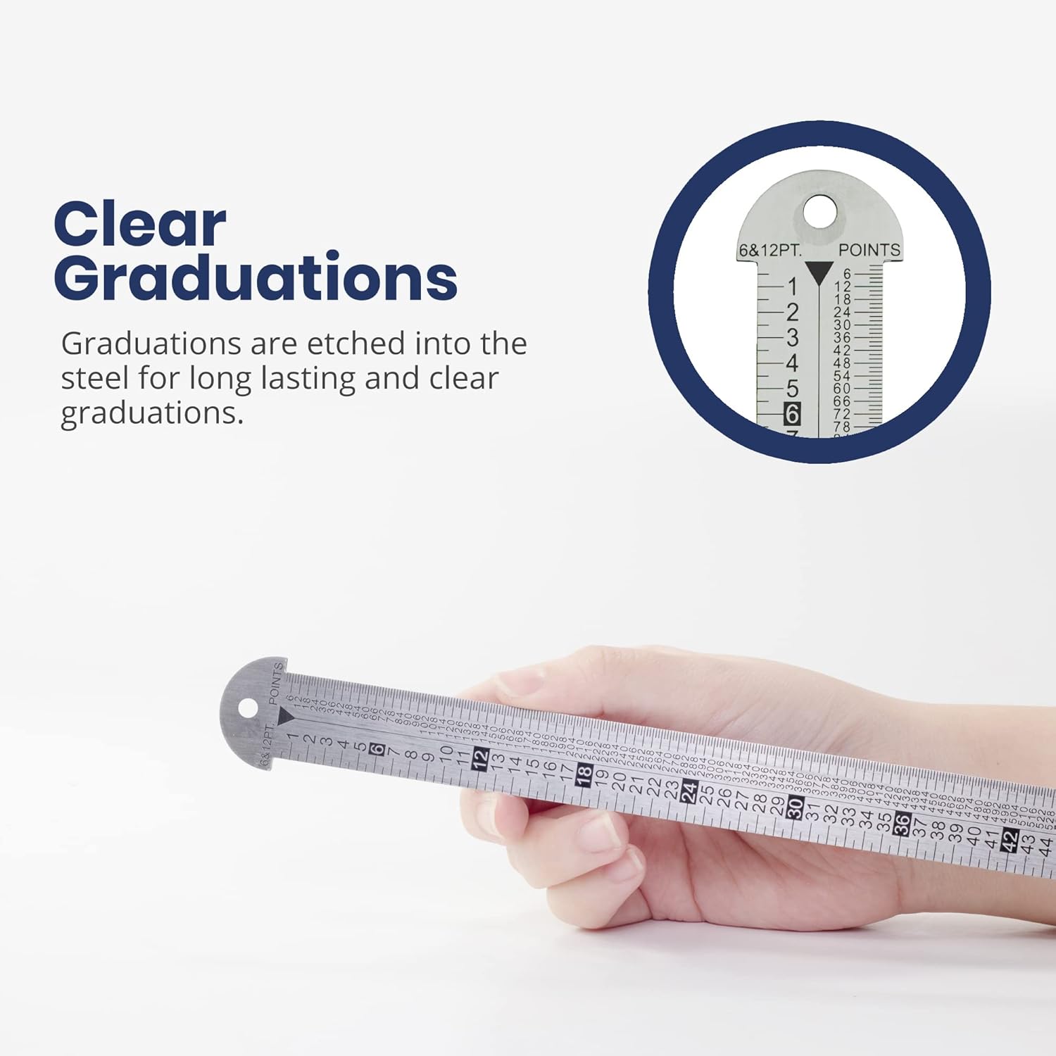 Pacific Arc 12 inch Pica Pole Metal Ruler, with Pica, Points, Inches, and Agate Measurements, Stainless Steel Ruler for Drafting