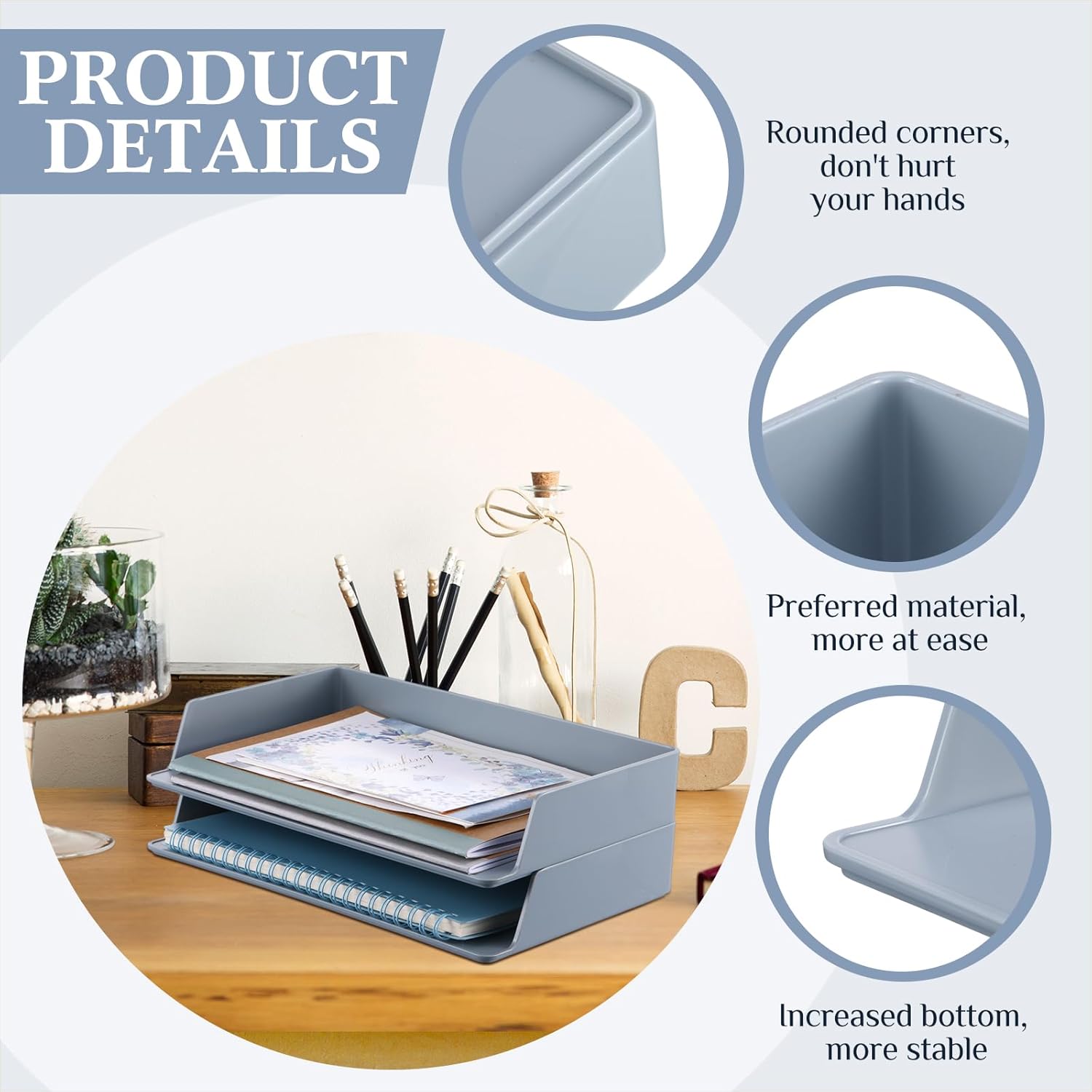 Stackable Design Promotes Space Efficiency: the stackable letter tray offers a space saving solution for your work area with its stackable design; By placing these trays vertically, you can save considerable desk space whilst maintaining easy and quick access to your essentials, consequently elevating your productivity