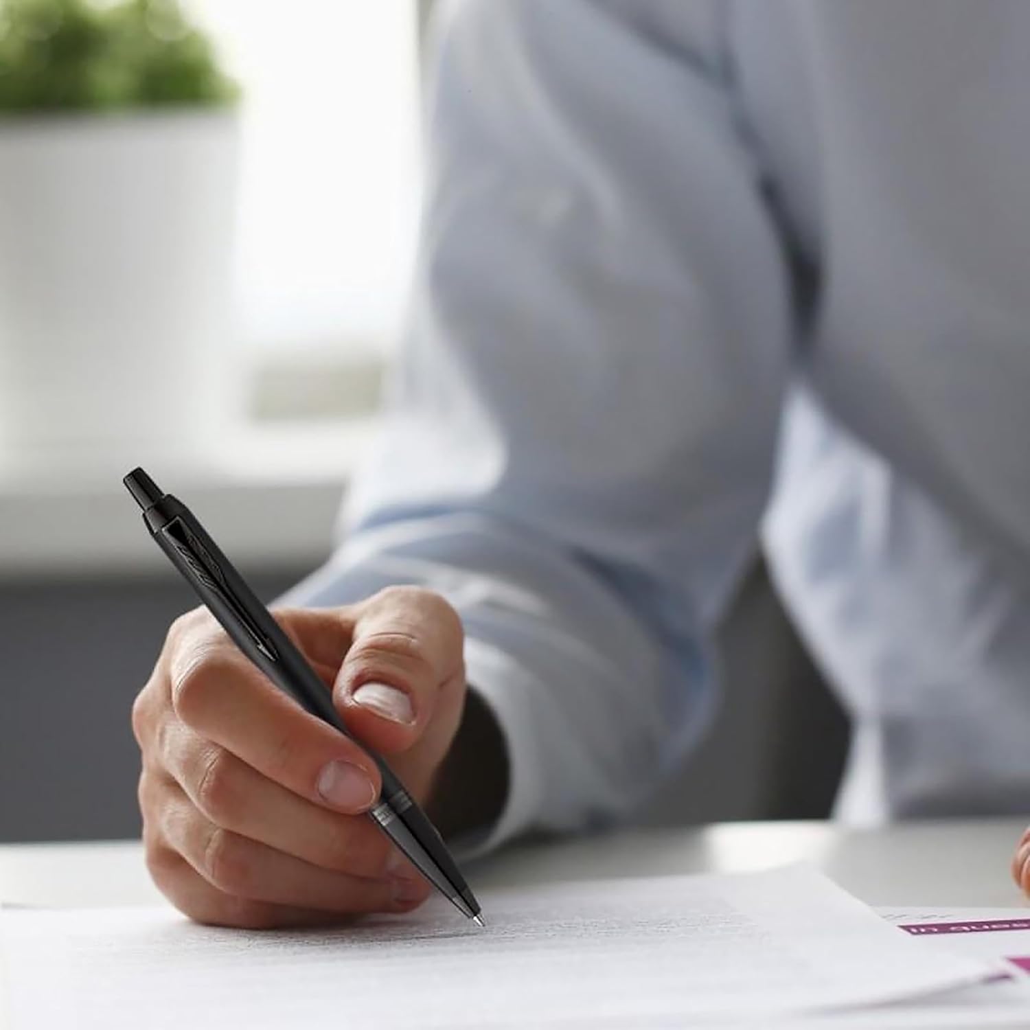 At once smart, polished and professional, the Parker IM Matte Black BT is an ideal partner with unlimited potential. The sleek tapered shape pairs seamlessly with innovative designs to make a striking statement. The black finish trims compliment the resolutely modern matte black lacquered body, making this Parker pen the perfect writing instrument for students and professionals. Retracting with a satisfying click, the ballpoint tip and Quinkflow ink ensure an exceptionally smooth and reliable writing experience. For use with QUINK Ballpoint and Gel ink refills. Every detail is refined to deliver a writing experience that is at once dependable and faithful to over 130 years of Parker brand heritage.