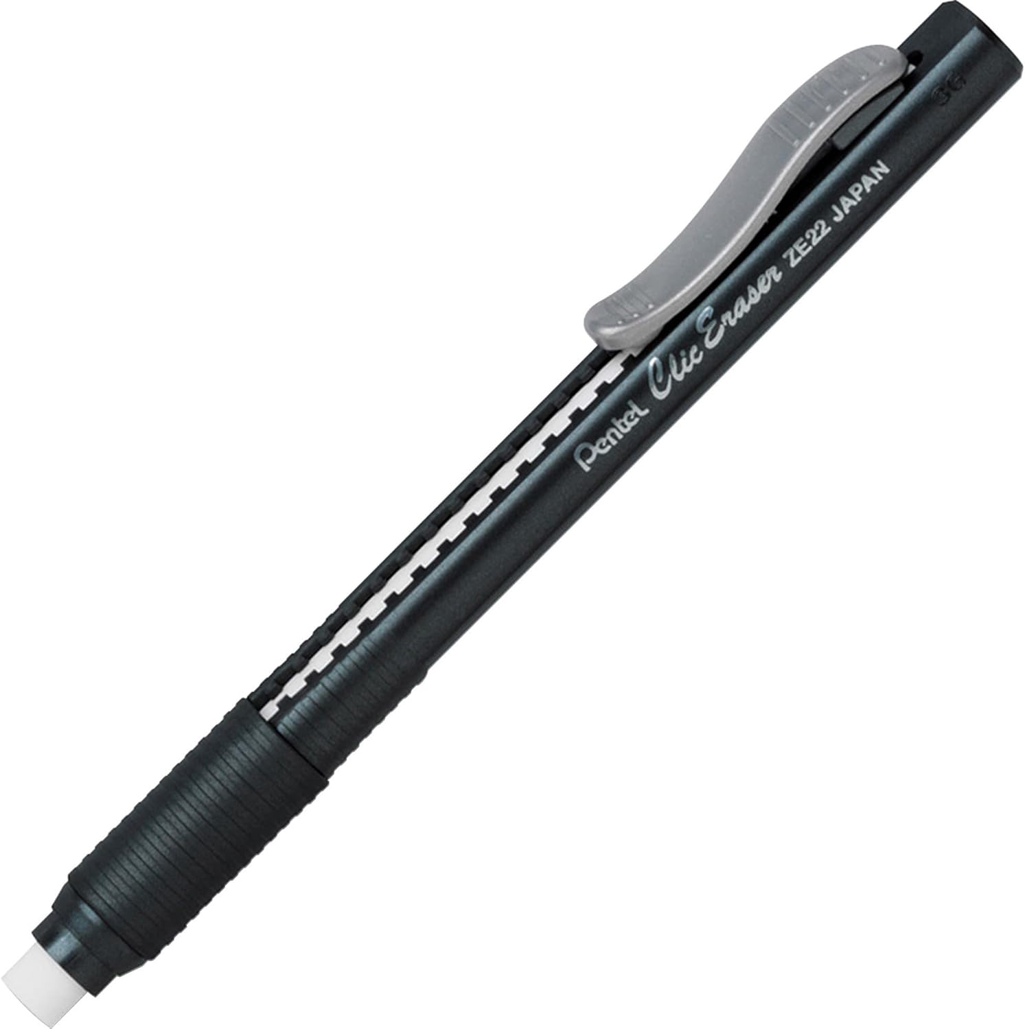 Pentel Clic Eraser, Retractable, Pocket Clip, Rubber Grip, Black Barrel (PENZE22A)