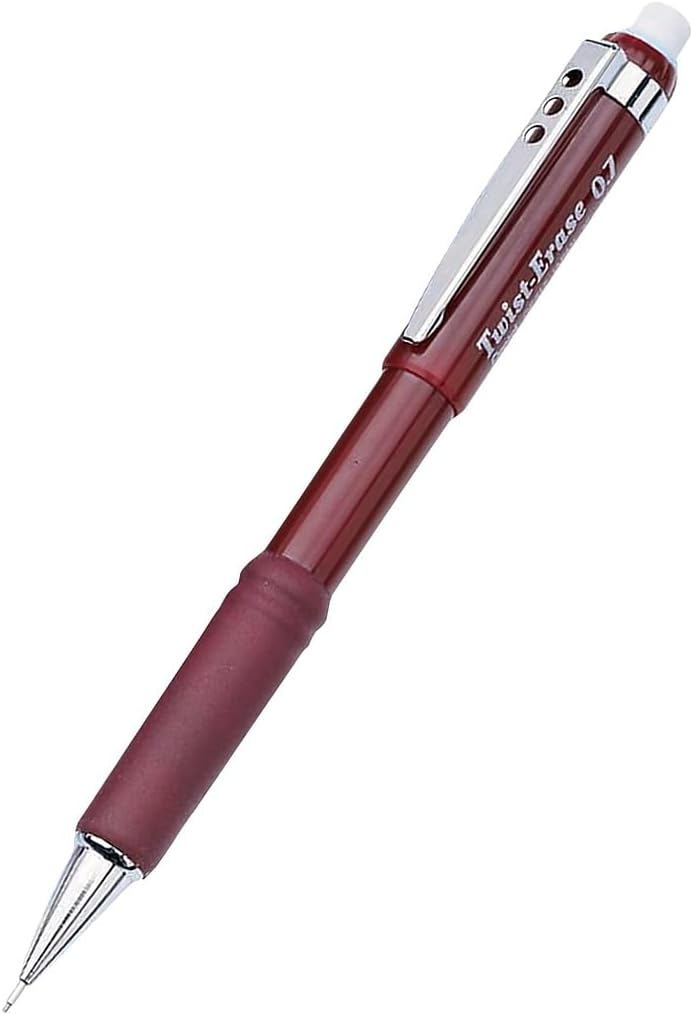 Part of the popular Pentel Twist-Erase family of products. New barrel design features a smooth, soft latex-free grip for the ultimate in writing comfort. 0.5mm tip produces crisp, fine lines of consistent density. Tall, 1 1/4″ twist-up eraser is larger than all ordinary pencil erasers and enhances the value. Refillable with Pentel Super Hi-Polymer® Lead and E10 eraser. 1 pencil and 1 refill eraser included in pack.