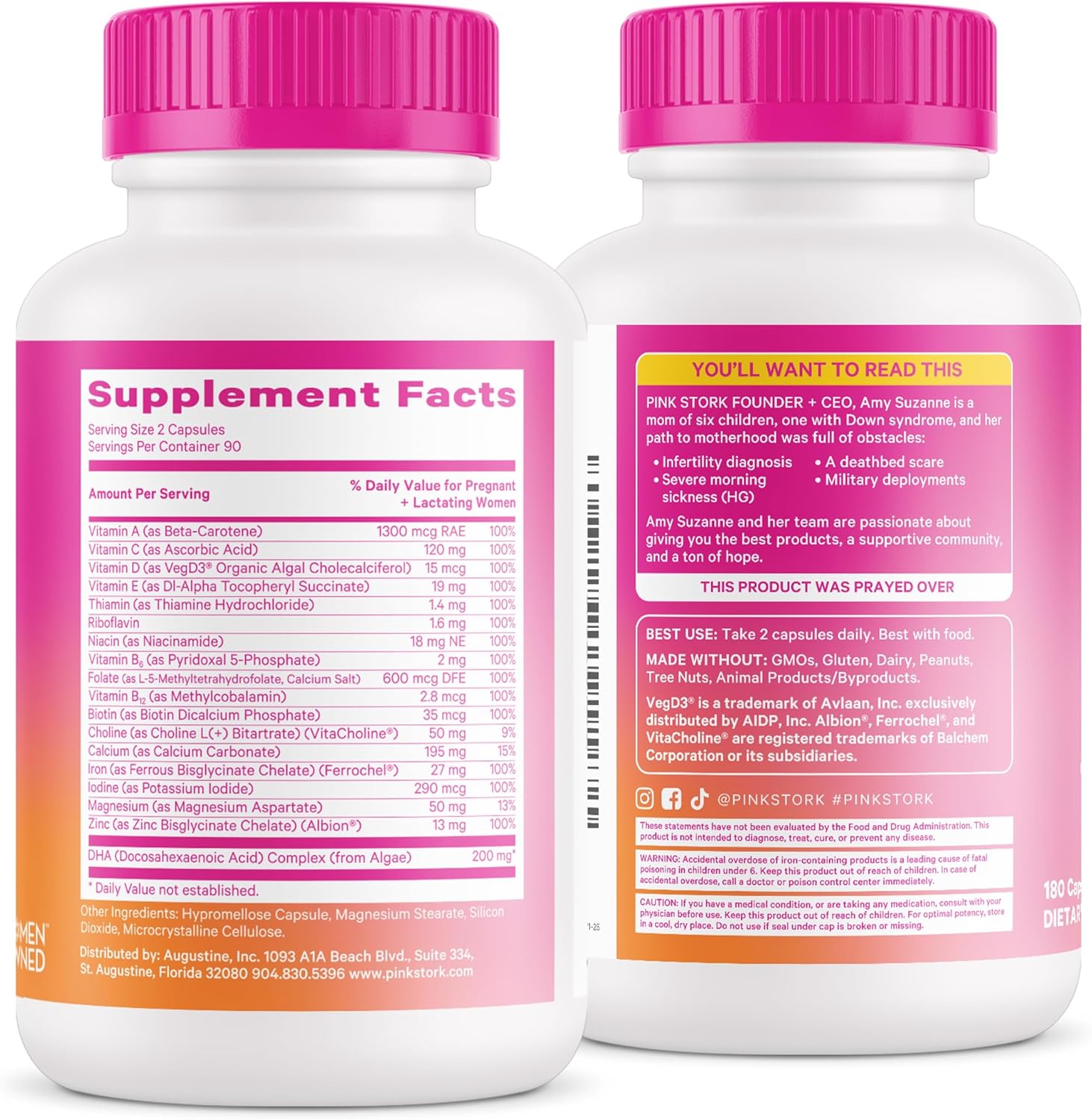 Pink Stork Total Prenatal Vitamins with DHA, Folate, and Iron, 3 Month Supply to Help Support Fetal Development, Pregnancy Must Haves – 180 Capsules