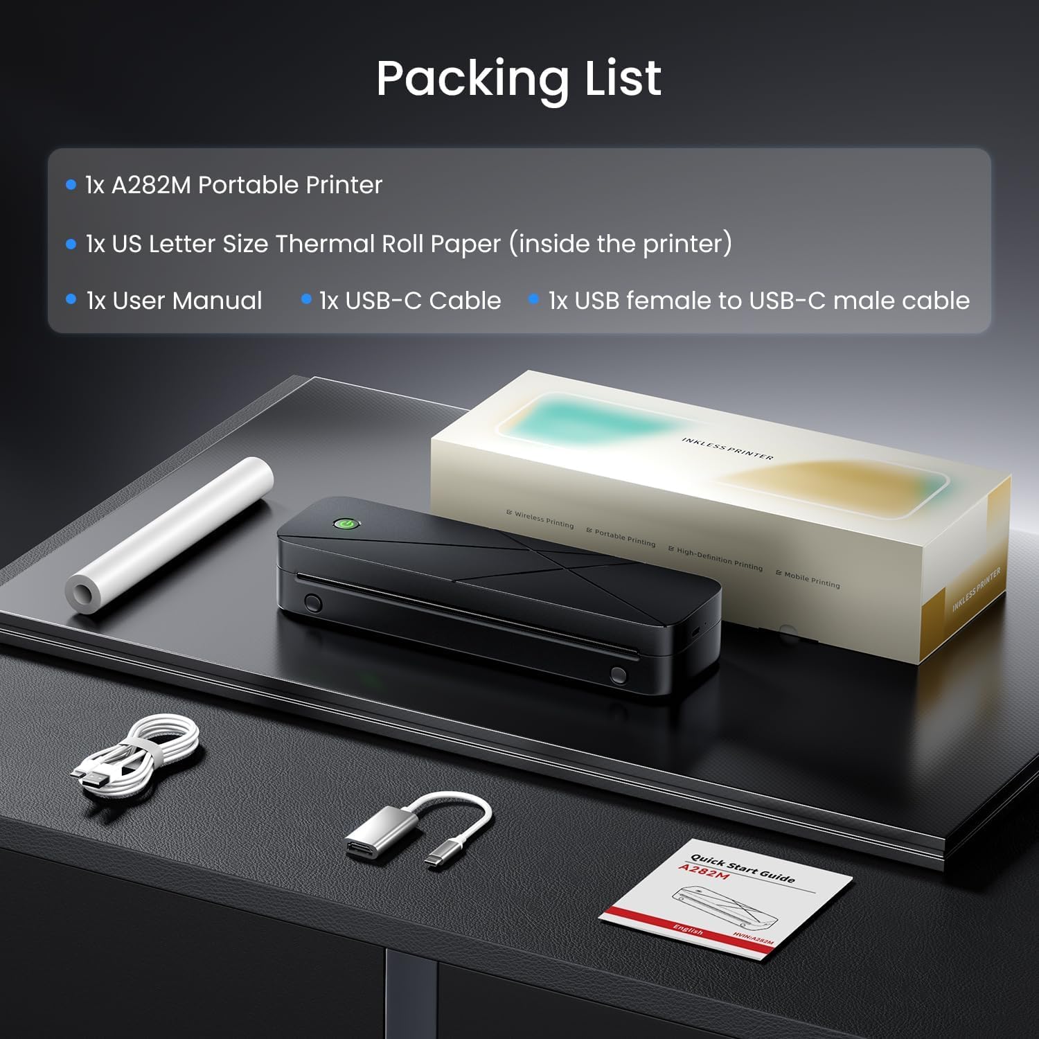 Portable Printers Wireless for Travel, Inkless Printer for Phone & Laptop, Thermal Bluetooth Small Compact Mobile Printer for Home Use School Office Vehicle, Support 8.5″ X 11″ US Letter & A4 Size