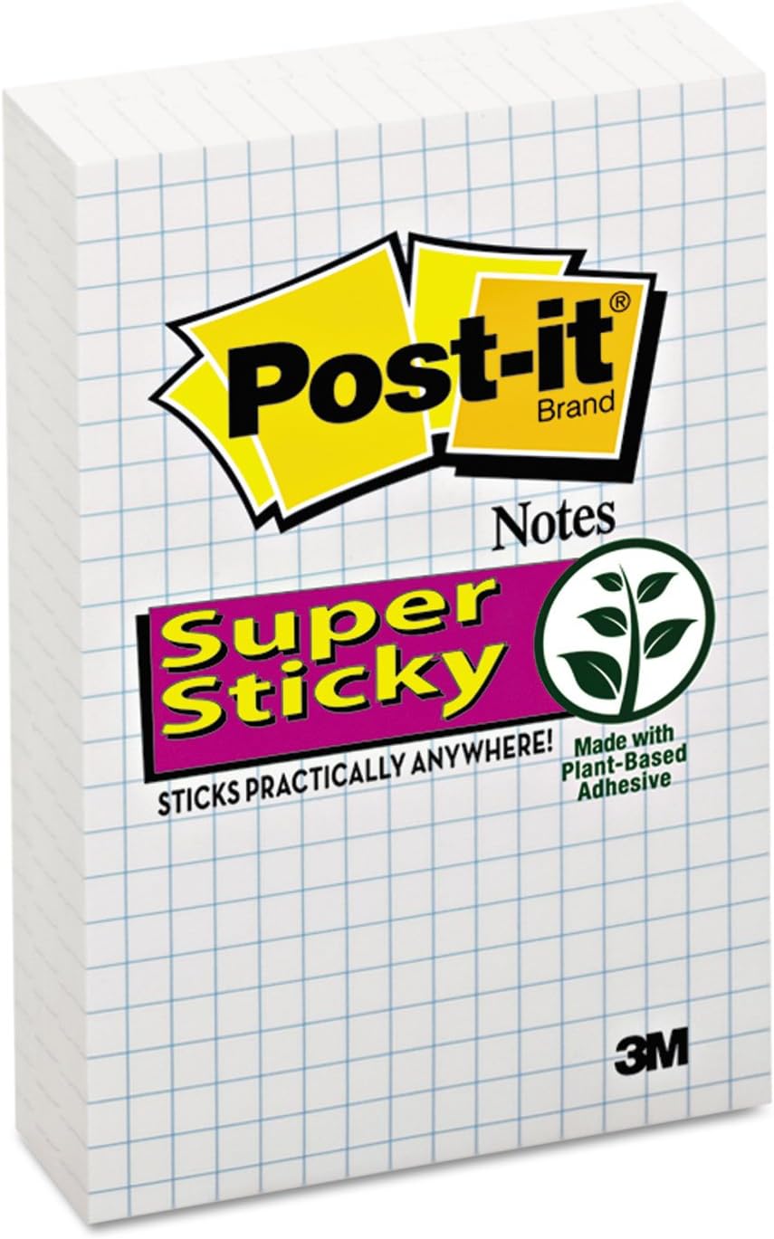 Post-it Super Sticky Notes, 4×6 in, 3 Pads, 2X The Sticking Power, White with Blue Grid Lines, Recyclable (660-SSGRID)
