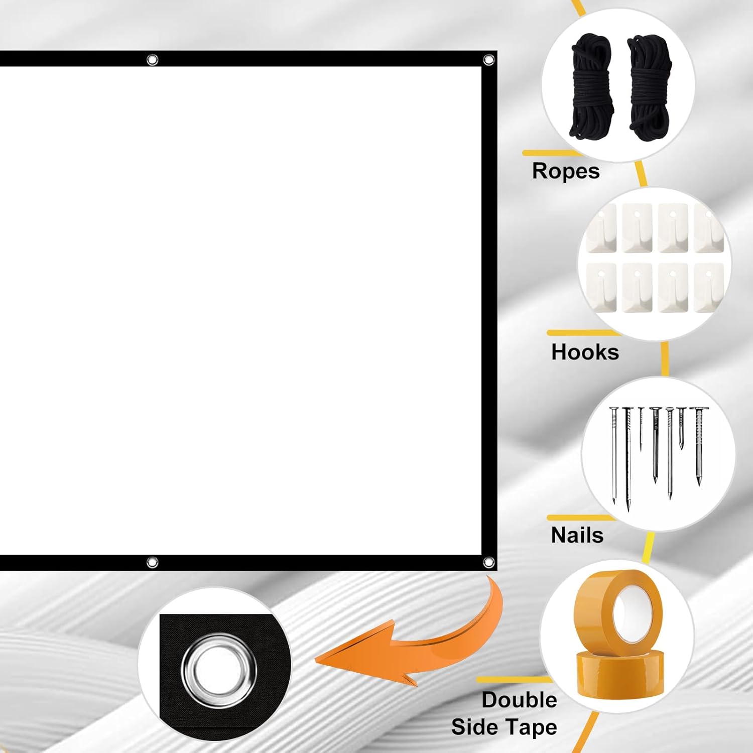 【DURABLE AND WASHABLE FABRIC】 Crafted from high-quality, washable fabric, the Jioijioi outdoor projector screen ensures longevity and easy maintenance. This durable material not only maintains pristine image quality but also allows for hassle-free cleaning, ensuring your projector screen remains in top condition for every viewing occasion.