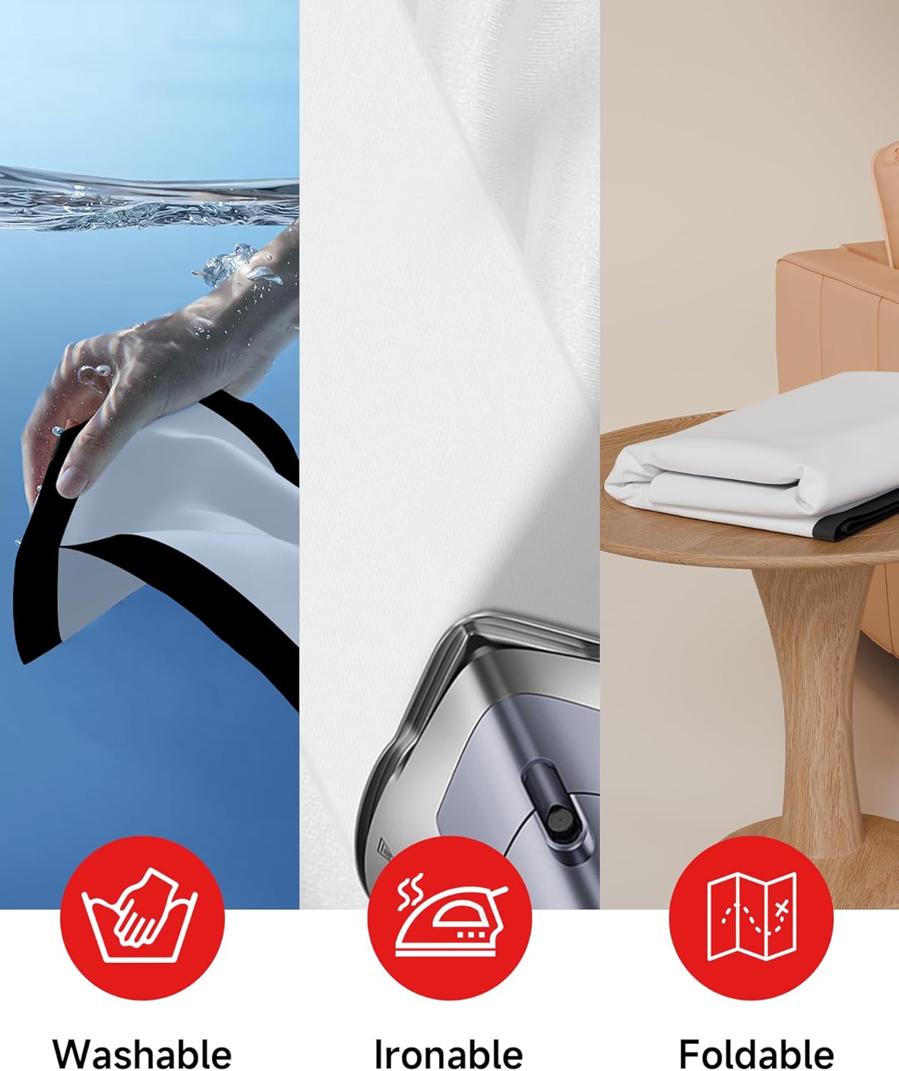 【Wrinkle-Free Surface】 Made from premium material with a wrinkle-free surface, this portable projector screen ensures clear and smooth images. The fabric resists creases and folds, providing a consistent and quality viewing surface for all your outdoor projection needs