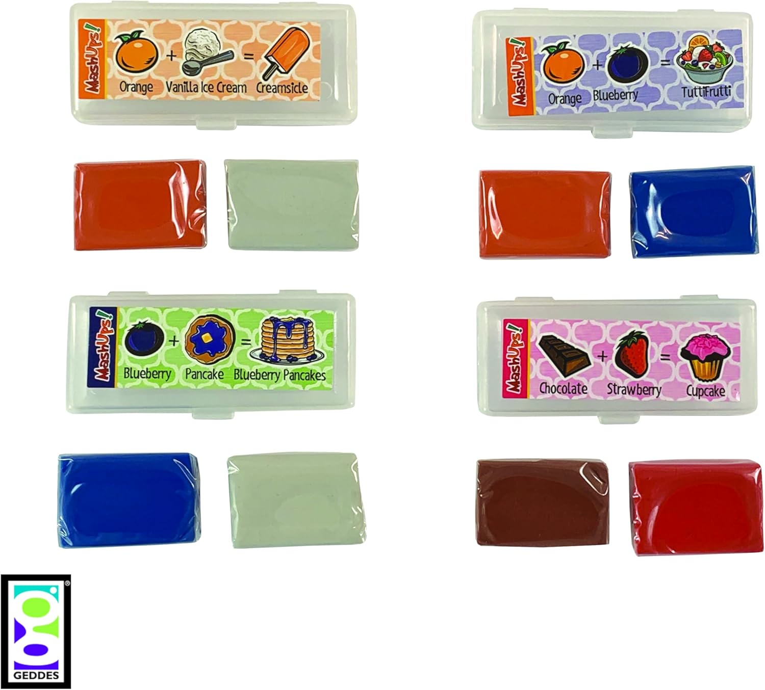 Geddes mash-ups scented kneaded erasers are fun accessories for kids. These scented erasers can be mashed up to create new scents. The 2 included soft and durable scented mash-ups erasers in each case can be pulled and twisted. Each case measures approximately 2.5” x 1”