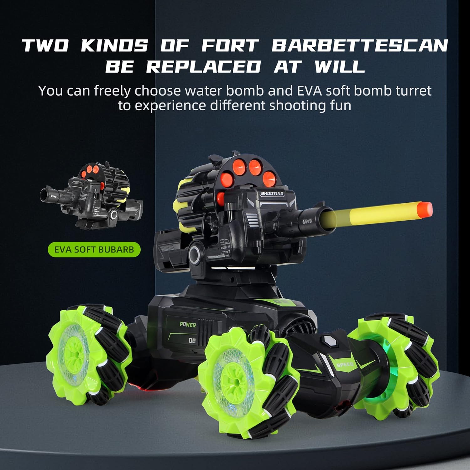 RC Car Shoot Bullet, Remote Control Hand Gesture Stunt Drift Truck, Hand Remote, 360°Rotating Battle Tanks with Soft Bullets Water Bomb, Spray, Music, Led, Toy Gifts(Green)