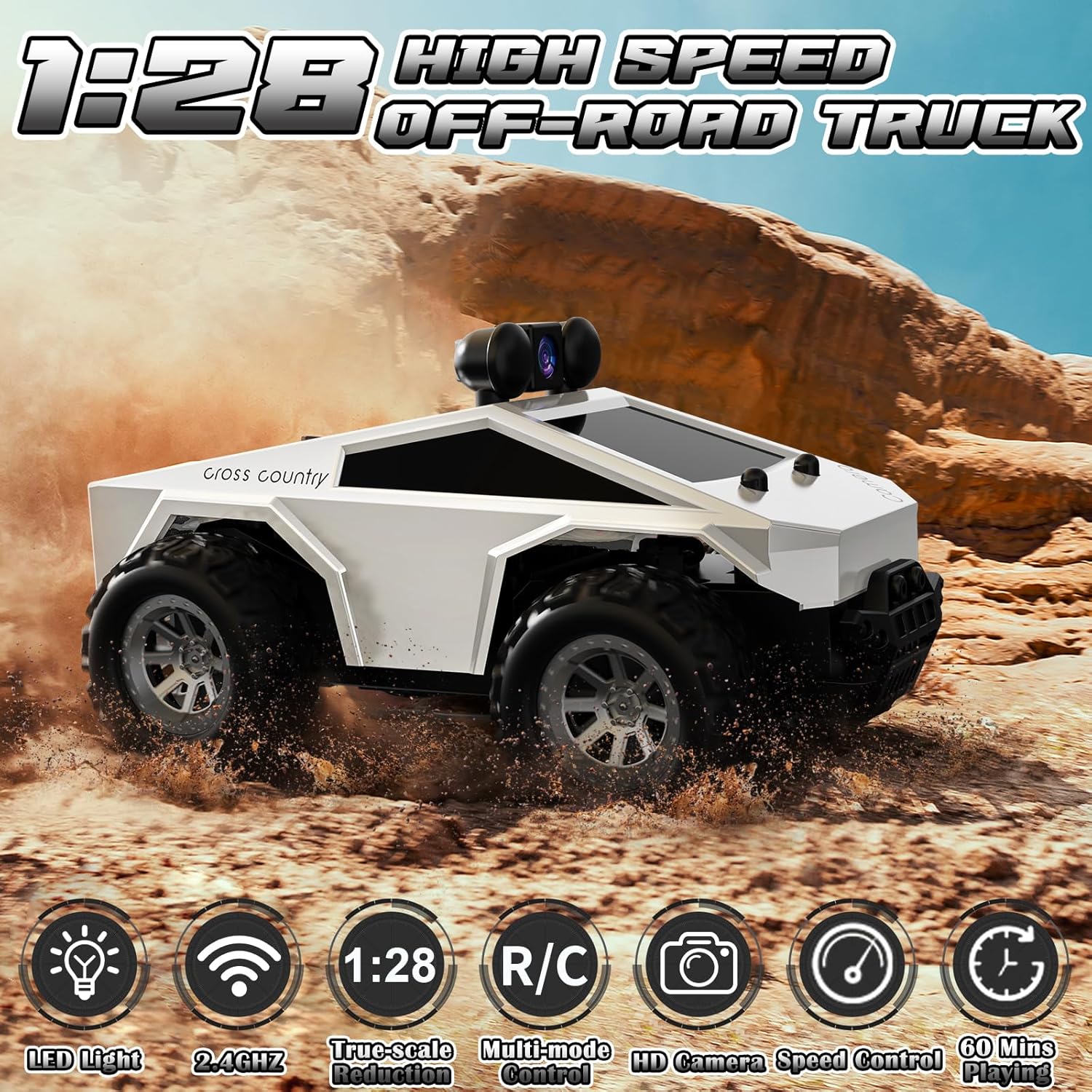 RC Cars with Camera Remote Control Truck with 720P HD FPV Camera, All-Terrain Remote Control Car with Body Light Rechargeable Battery, 1:28 RC Car Vehicle Toy Gifts for Adults Kids Boys Girls