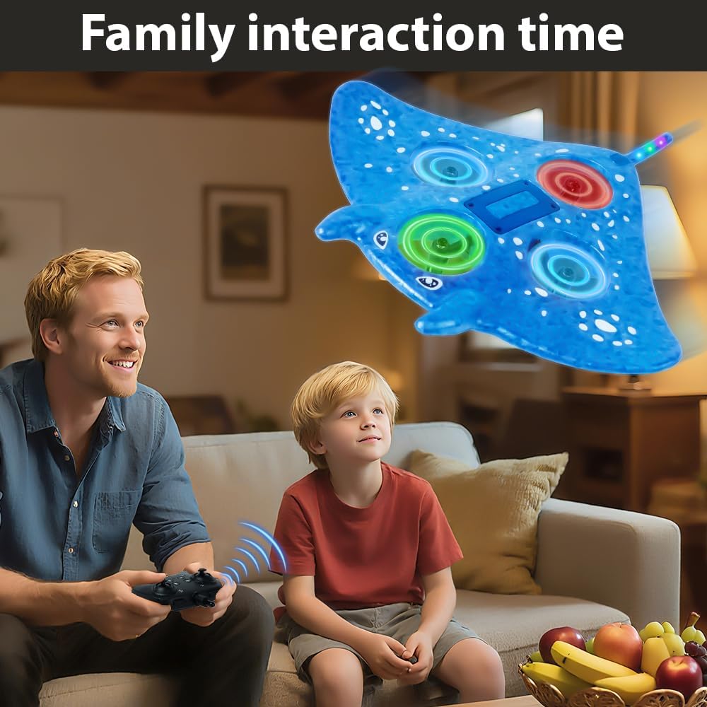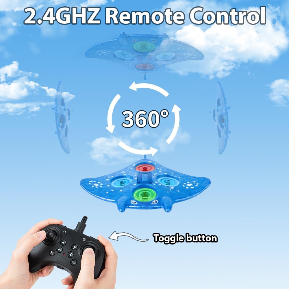 Easy to Use: This kid-friendly manta ray drone measures 10 inches is to be no assembling required and With a simple press of a button, you can launch your rc plane into the sky or bring it back safely to land. Watch your little one’s eyes light up as they master incredible flight maneuvers. The intuitive controls make it easy for kids and adults of all ages to take command of the skies, whether they’re beginners or already have some flying experience.