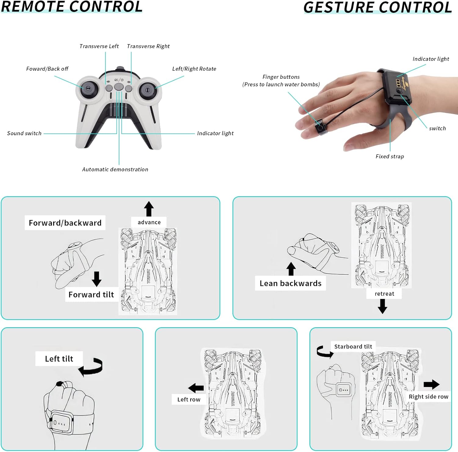 RC Stunt Tank with Light, Watch Gesture Sensor RC Tank Toy, 360 Rotation Remote Control Stunt Car Shooting Water Bullets, Gifts for Children (Black and Cyan)