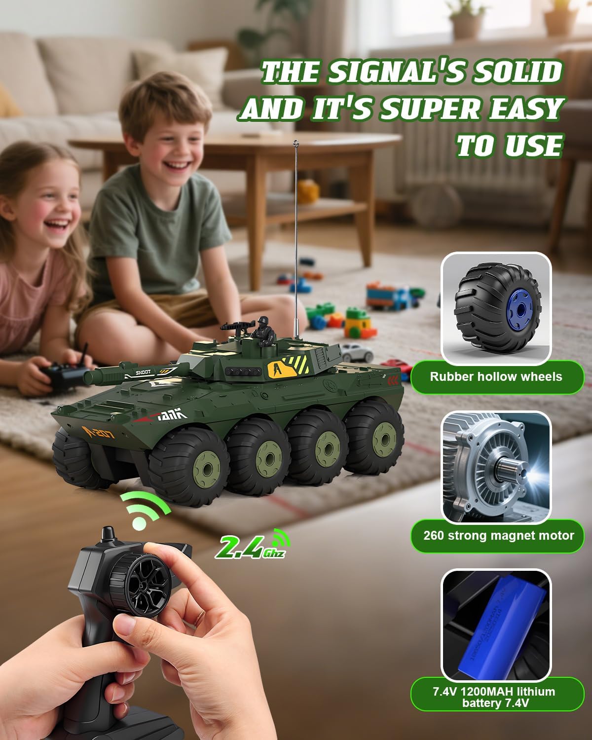 RC Tank Amphibious IFV Remote Control Truck Toy for Kids 5-12, 40+ Min Playtime, 2.4Ghz Waterproof Off-Road Crawler with Manually Rotating Turret (Green Camouflage)