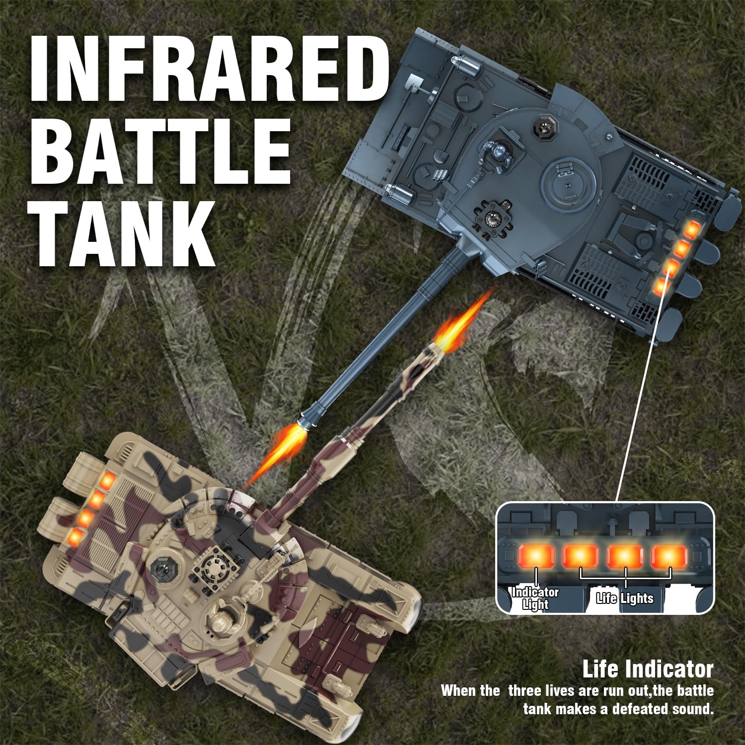 RC Tank Set,1/24 RC Battle Tank Set Toy Tanks with Life Indicators and Spray,2.4G Remote Control with Realistic Sounds and Lights,RC Army Toys for Boys Age 6+ Year Old Gifts for Kids and Adults