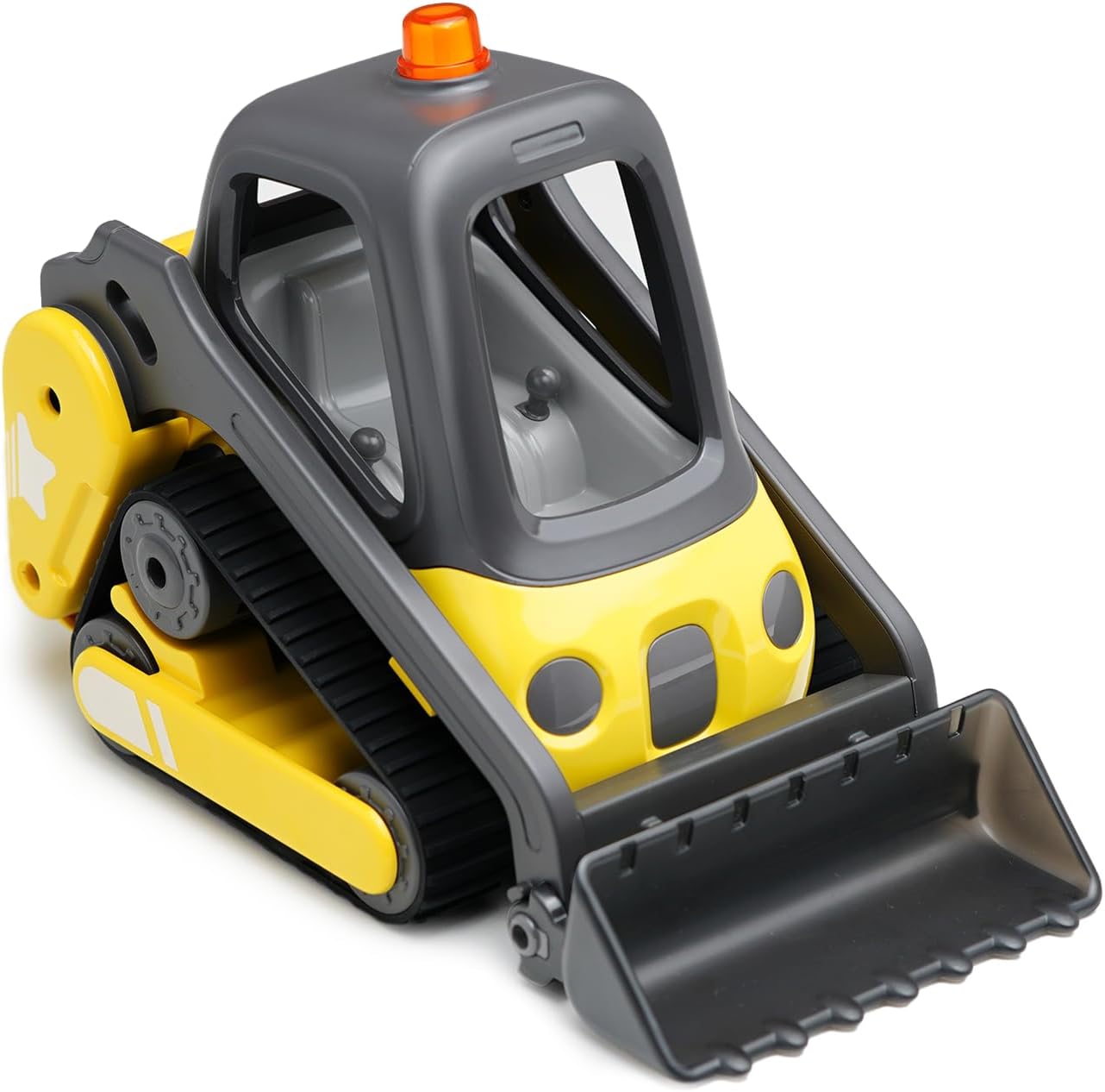 🛠️ Built Tough for All Terrains Crafted from impact-resistant ABS plastic and equipped with heavy-duty rubber tracks, this remote control skidsteer can tackle carpets, dirt, gravel, and more. Engineered to withstand rough play—indoors or out.