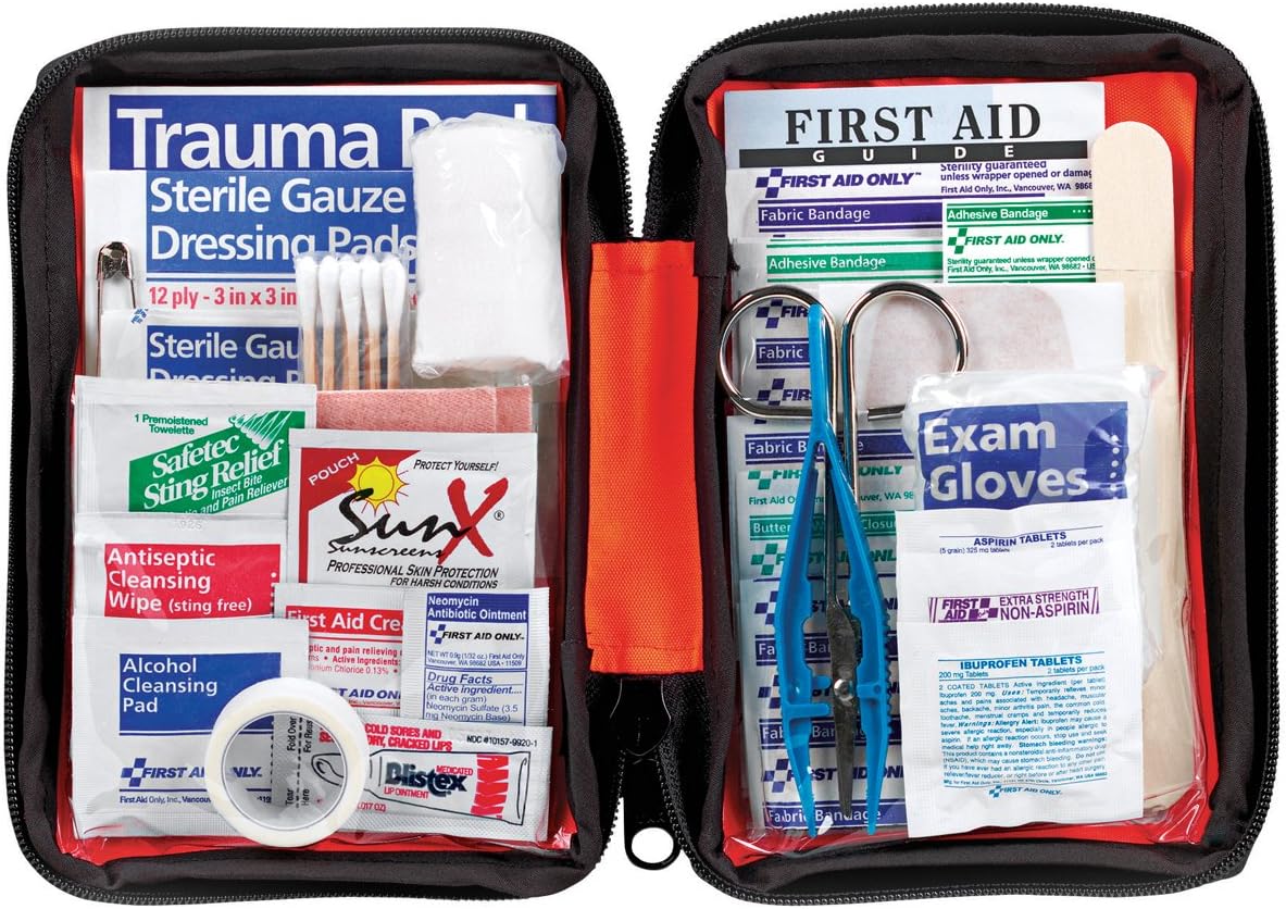 Includes 107-piece first aid kit that has first aid essentials for minor injuries like bandages and wound cleaning solution. Take care of medical emergencies with easy-to-use supplies. Great for a car emergency kit or boat accessories