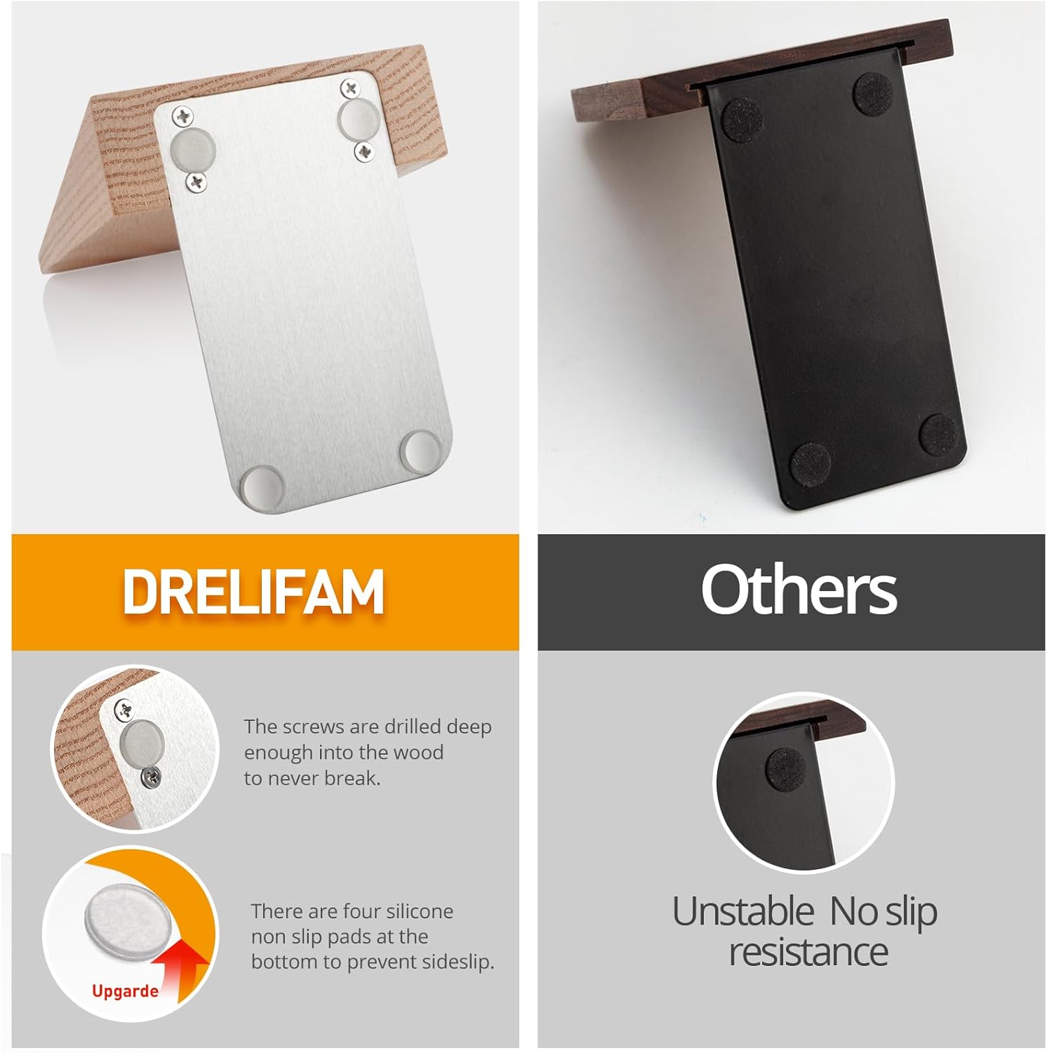 PREMIUM MATERIAL: The book stoppers are made of red oak wood, so each one has a unique natural wood grain. Modern and classic in appearance, it is suitable for all occasions. The metal plate and screw parts are made of stainless steel, which is very suitable for long-term use in the bookshelf.