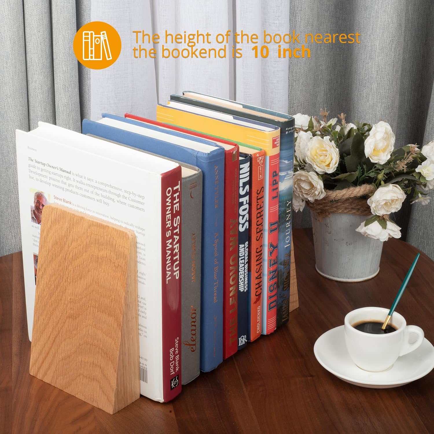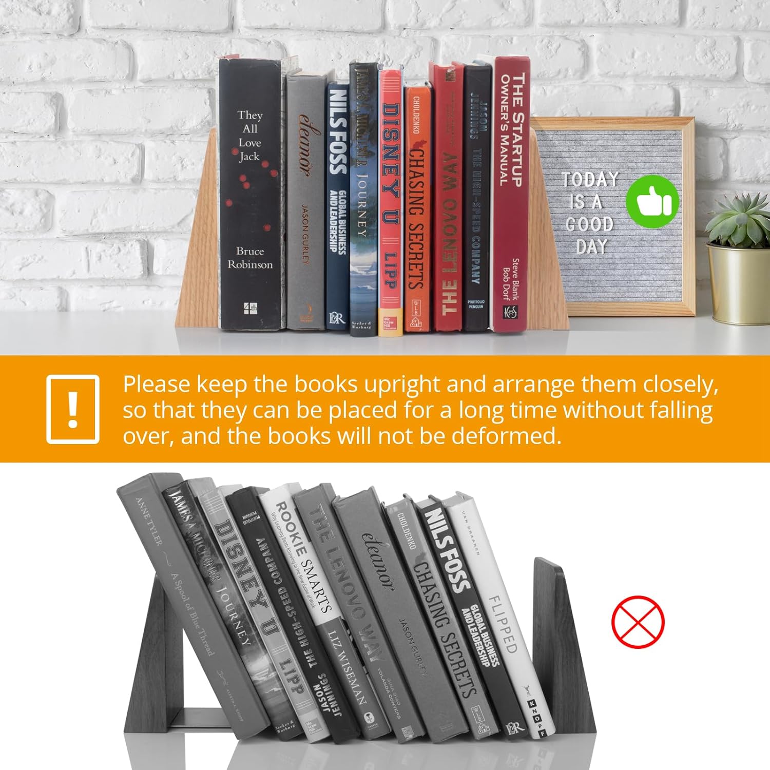 STRONG STABILITY: The triangular design makes the bookend more stable. The planks of the book ends are carefully selected, only used the thick ones, so each book end weighs more than 1 pound.