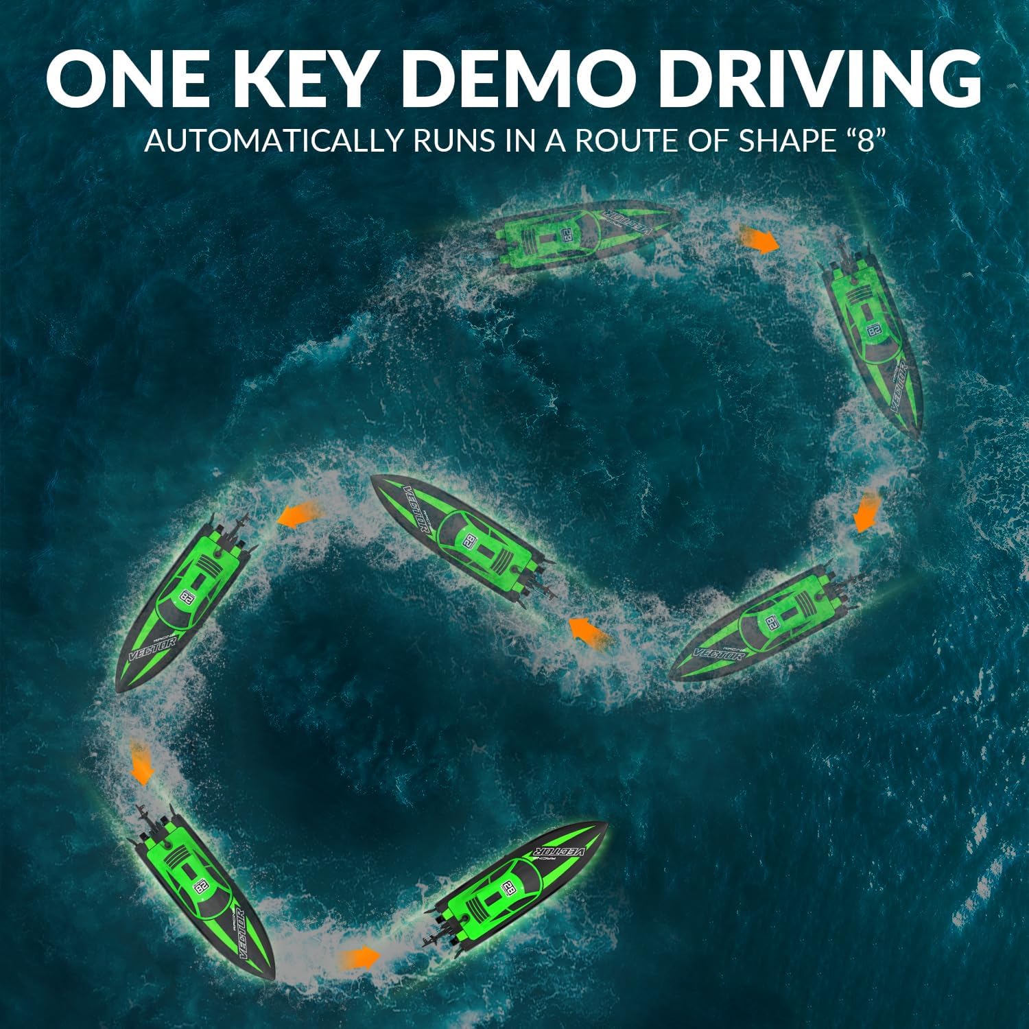 Mini remote-controlled boat features excellent performance design, allowing you to execute advanced maneuvers such as U-turns, O-turns, and figure eights on water.
