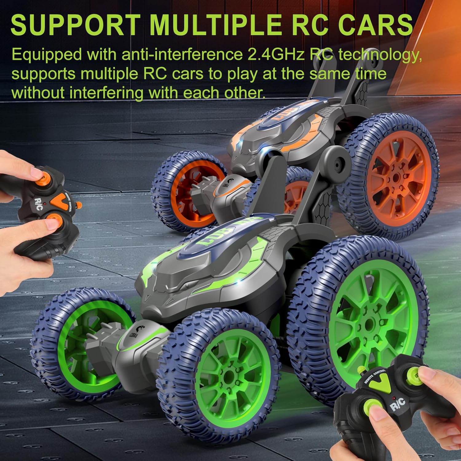 Remote Control Car, 2.4 GHz RC Cars for Boys Age 6-12, 360-Degree Rotating Fast Stunt Remote Control Cars with Cool Lights for Boys Age 6+ (Green)