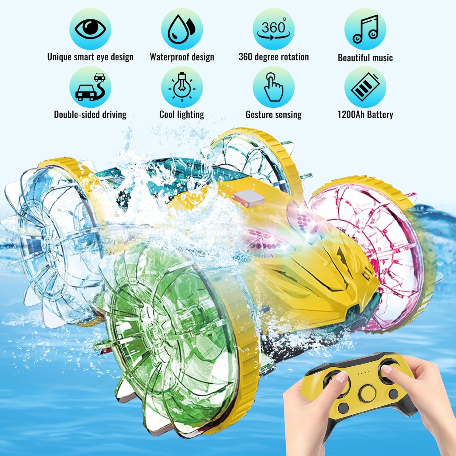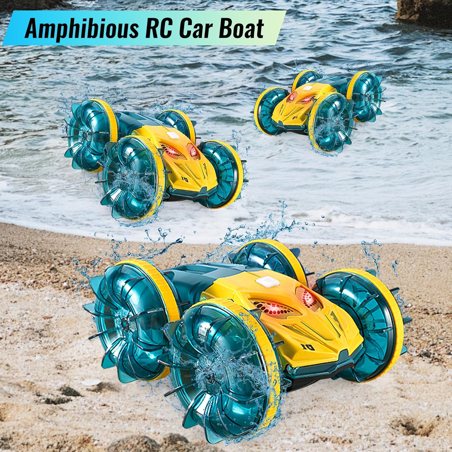 Waterproof RC Car Pool Toy:Kids’ RC car is designed for land and water. RC boat can effortlessly transition from off-road RC car to boat, allowing kids to have fun both on land and in water. The waterproof IPX7 design ensures the remote control car operates smoothly in various environments.