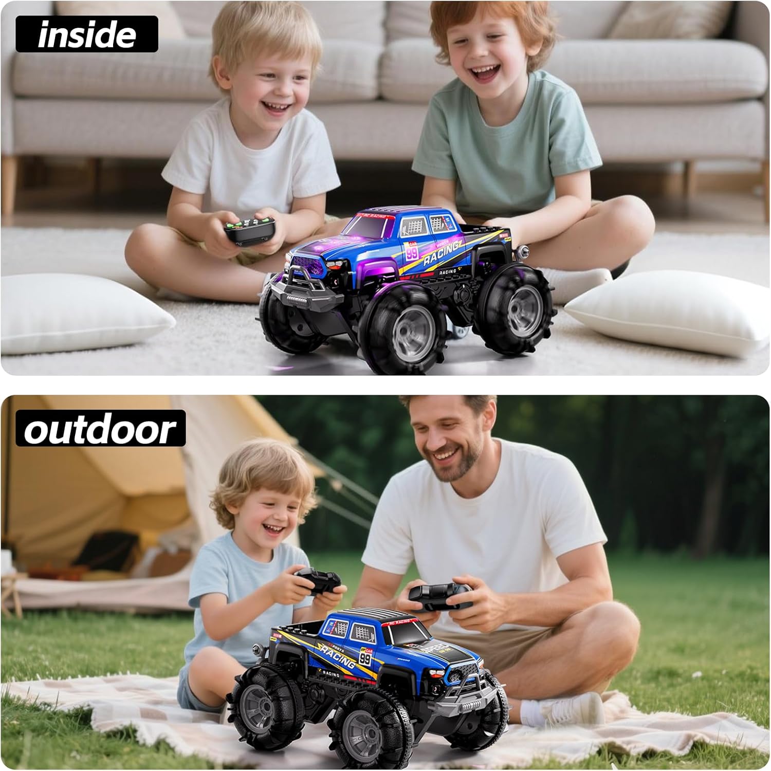 Remote Control Car: The remote control car features cool light and sound effect. Includes a remote, wrist strap, and 2 rechargeable batteries. Waterproof build is nice for outdoor fun for kids aged 4-8 who love rc truck and remote control car for boys 4-7