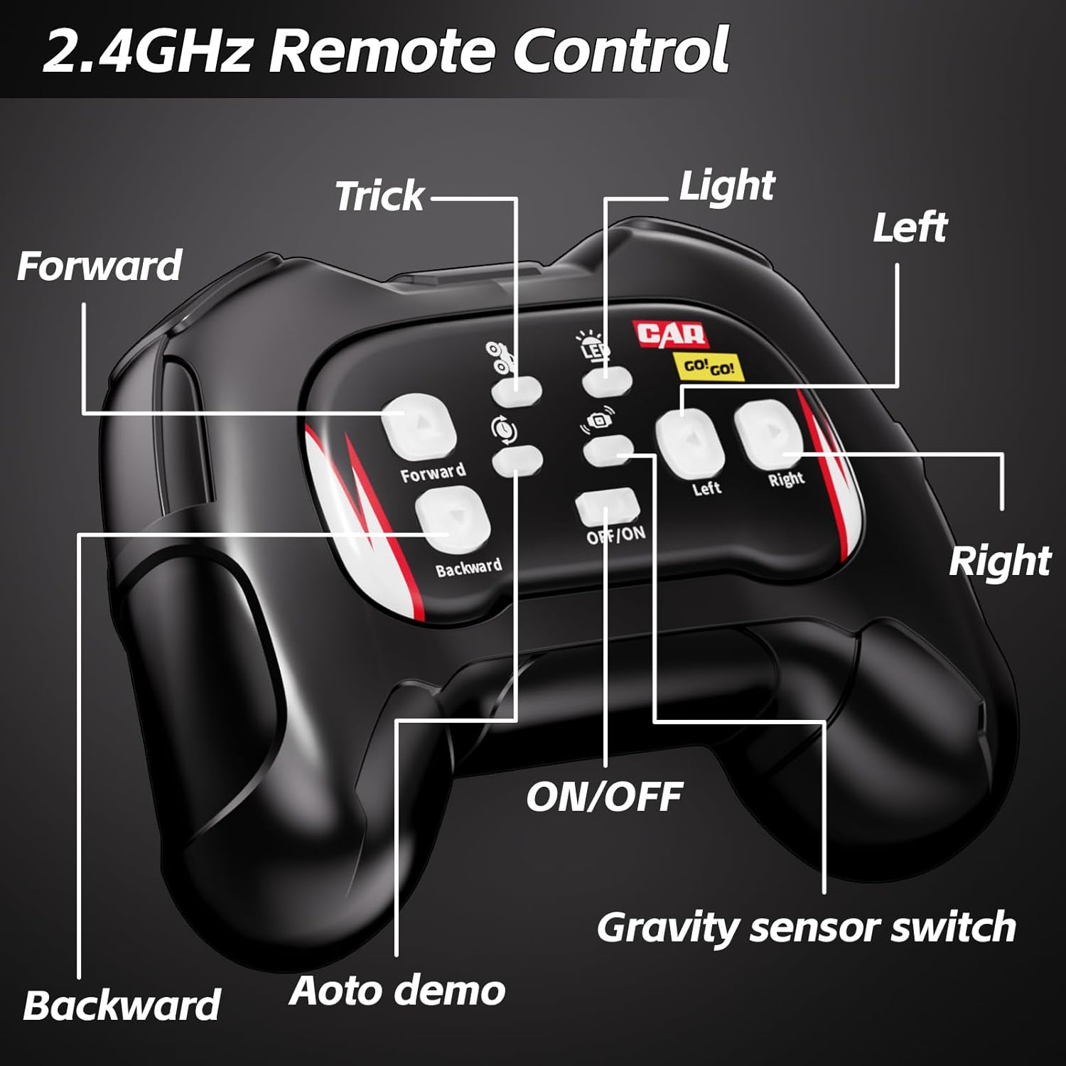 2.4GHz Remote with Gravity Sensor Mode: Comes with a 2.4GHz remote controller and wearable on wrist with gravity sensor mode for tilt-based control. Up to 164 feet range-fun for both rc cars for adults and kids who enjoy remote control monster truck
