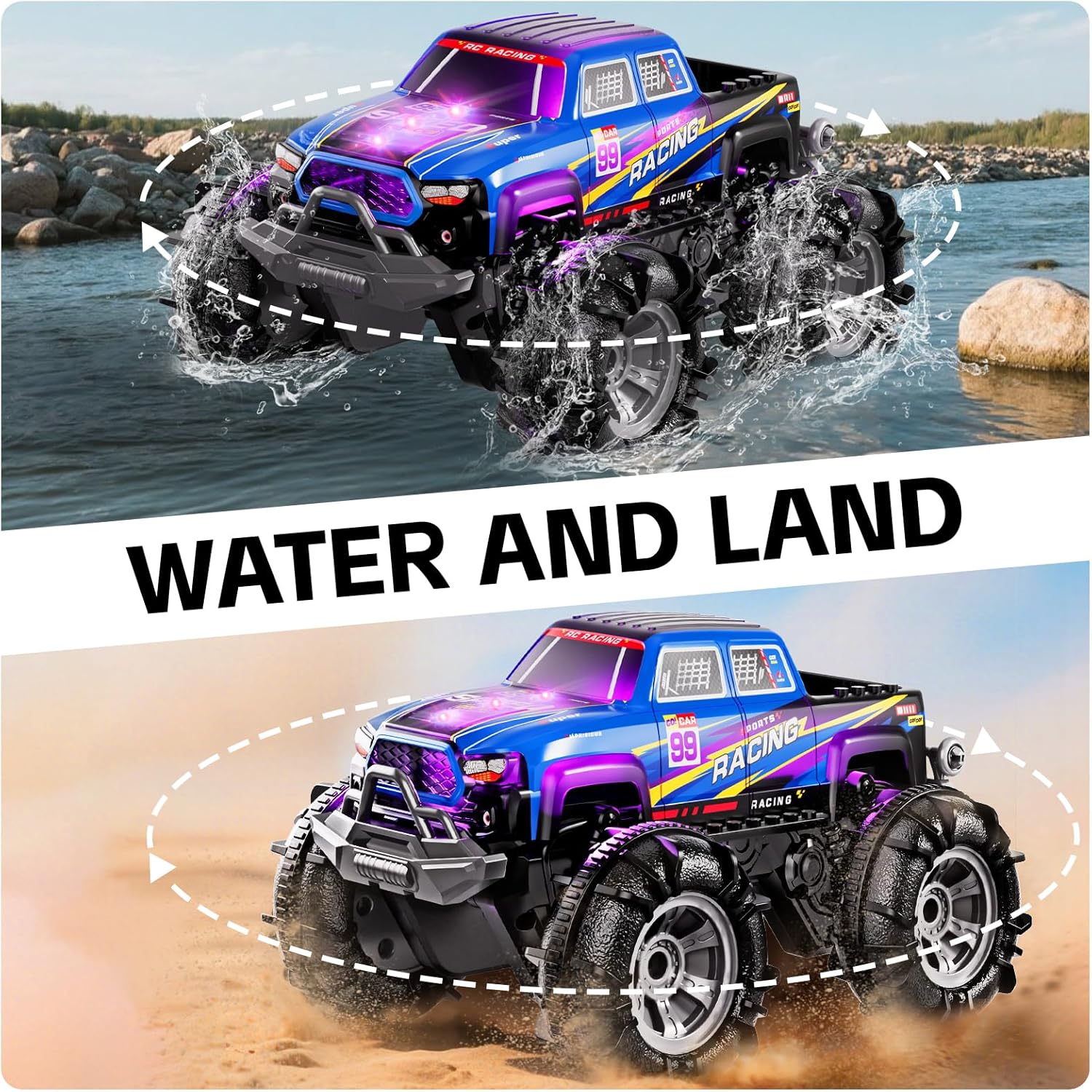 Remote Control Car for Boys 4-7, Amphibious RC Truck with Spray & Light, Remote Control Monster Truck Off-Road RC Cars for Boys Age 8-12, RC Cars for Adults Gift Toys 3-10