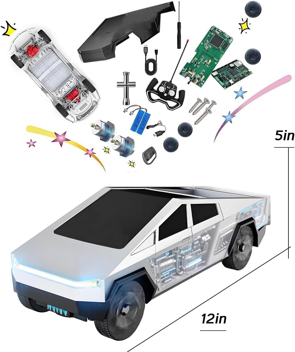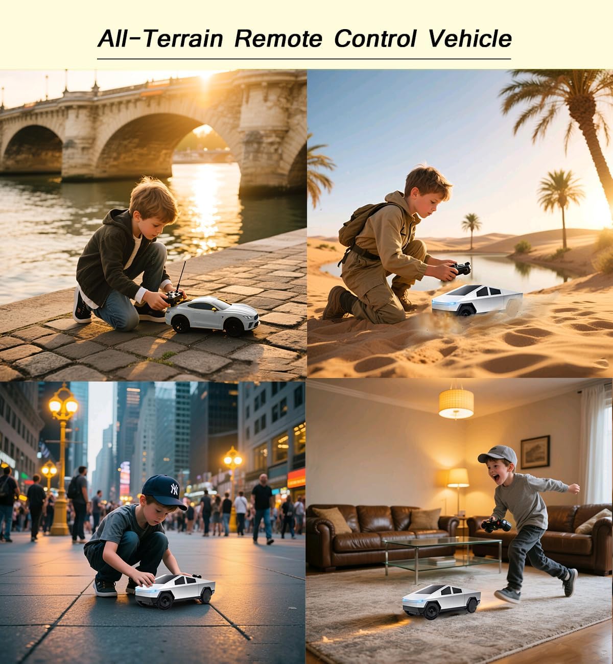 Powerful 2.4GHz Dual – Motor System:Equipped with a high – performance 2.4GHz dual – motor setup, this cyber style truck remote – control car offers exceptional speed and torque. The dual – motor design enables it to handle various terrains with ease, whether it’s racing on flat floors or maneuvering through small obstacles, providing kids with an exciting and dynamic driving experience
