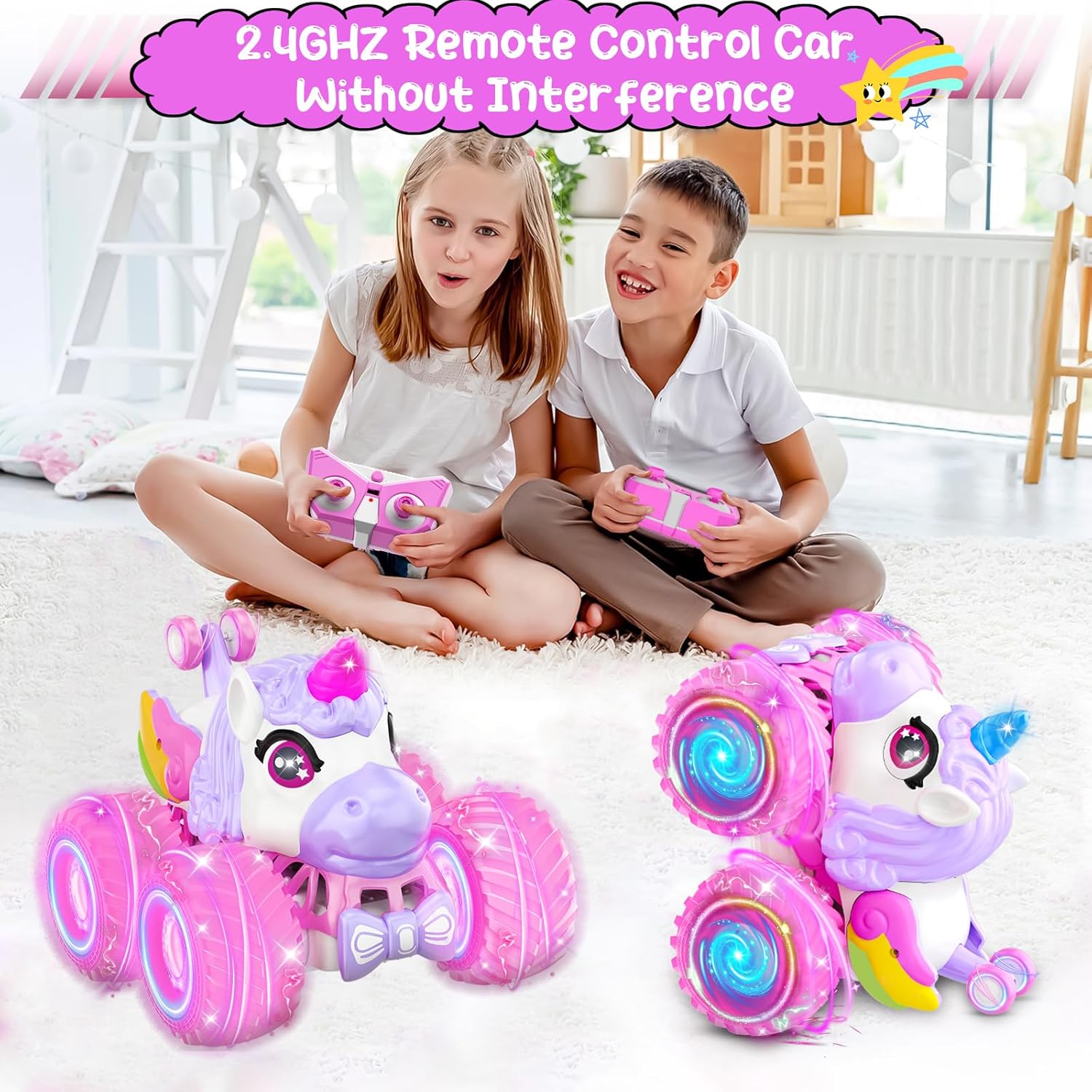 Easy Control and 2.4GHz Anti Interference: Our monster truck toys was designed for kids 3-10 year old, easy handling. 2.4GHz frequency band, interference free, kids can race multiple remote control cars simultaneously without any disruptions. Play with their little friends, enjoy double fun time. Great toy for exercise eye-hand coordination, and also enable children to build friendships and exercise social skills when playing remote control car with friends, Great unicorn toys for girls
