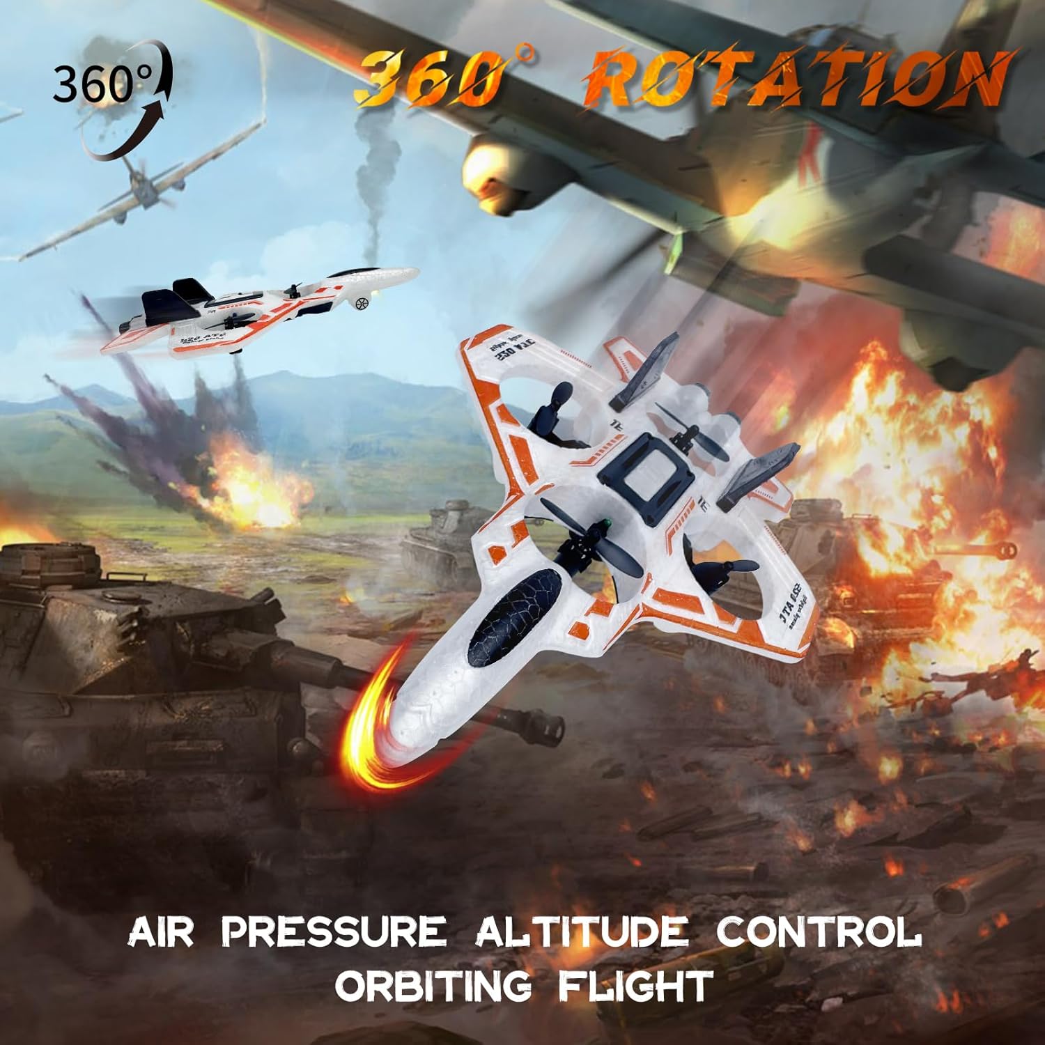Powerful Performance And Multiple Functions:A Toy Designed To Fully Simulate A Real Fighter, With A Variety Of Flight Stunts, Gravity Sensing, Hovering In The Air, Rolling In The Air, 360-Degree Hovering, Fast Takeoff, Headless Mode, Air Pressure Set Height, Speed Adjustment, And Colorful Lights. Strive To Fully Replicate The Flight Operation Feel Of A Real Fighter And Satisfy The Dream Of All Boys To Fly A Remote Control Fighter.