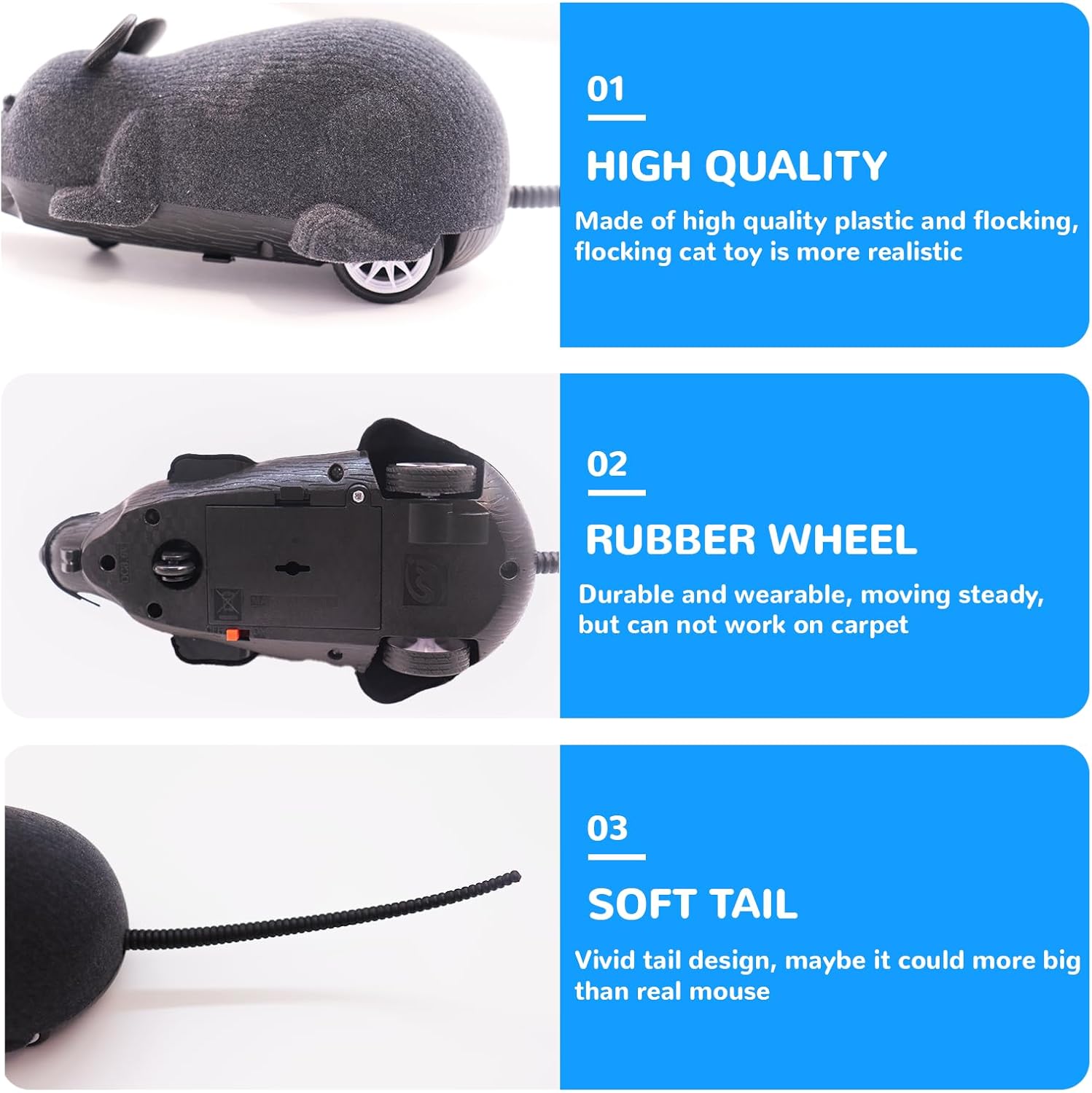 REALISTIC MOUSE TOY: This remote control mouse cat toy with realistic appearance, made of high quality plastic and flocking that makes it look like a real mouse. The mice cat toys encourage physical play and mental stimulation by appealing to your cat’s natural instincts