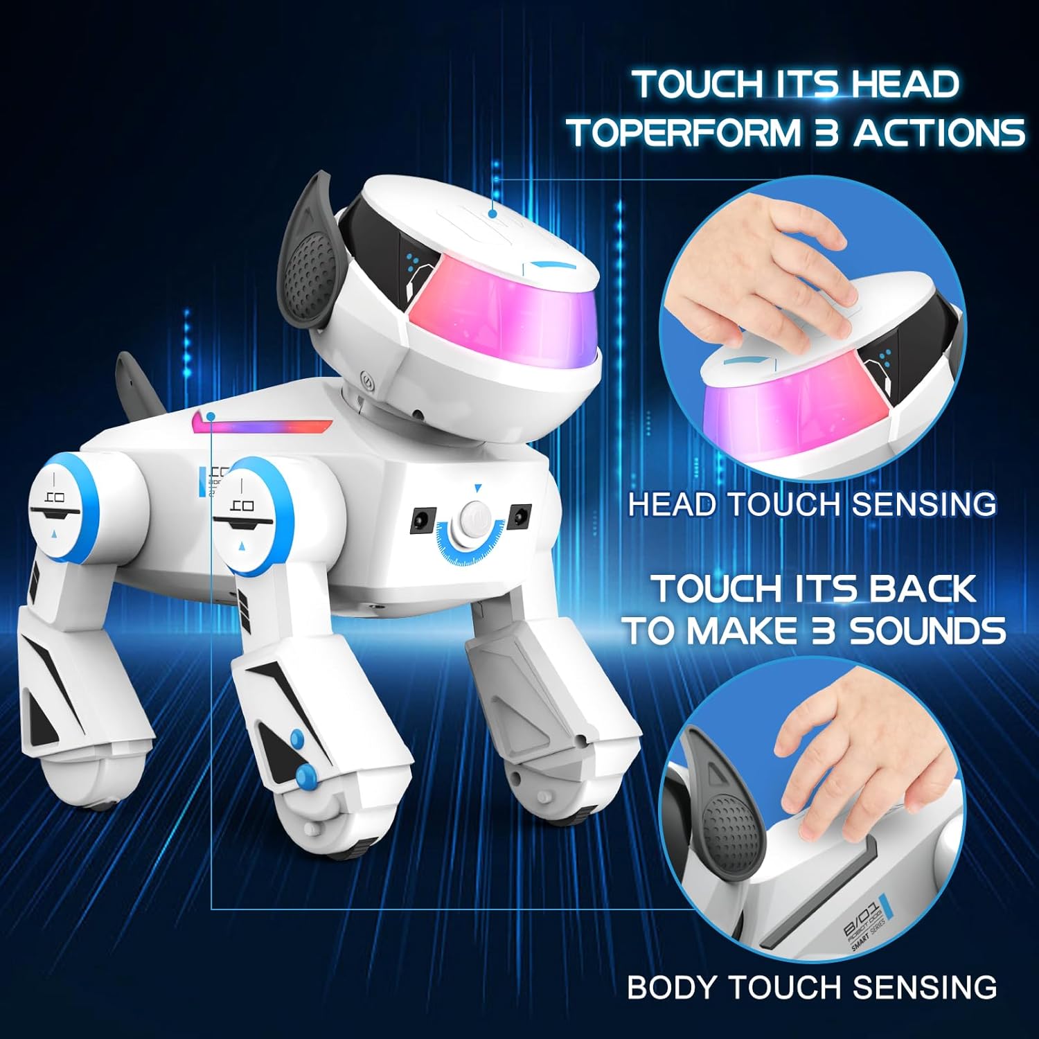 Remote Control Robot Dog Toys for Kids – Interactive Programmable RC Puppy with LED Eyes, Music & Dance, Touch & Bluetooth Speaker,USB Rechargeable Robotic Dog, Gifts for Boys & Girls Ages 3-12
