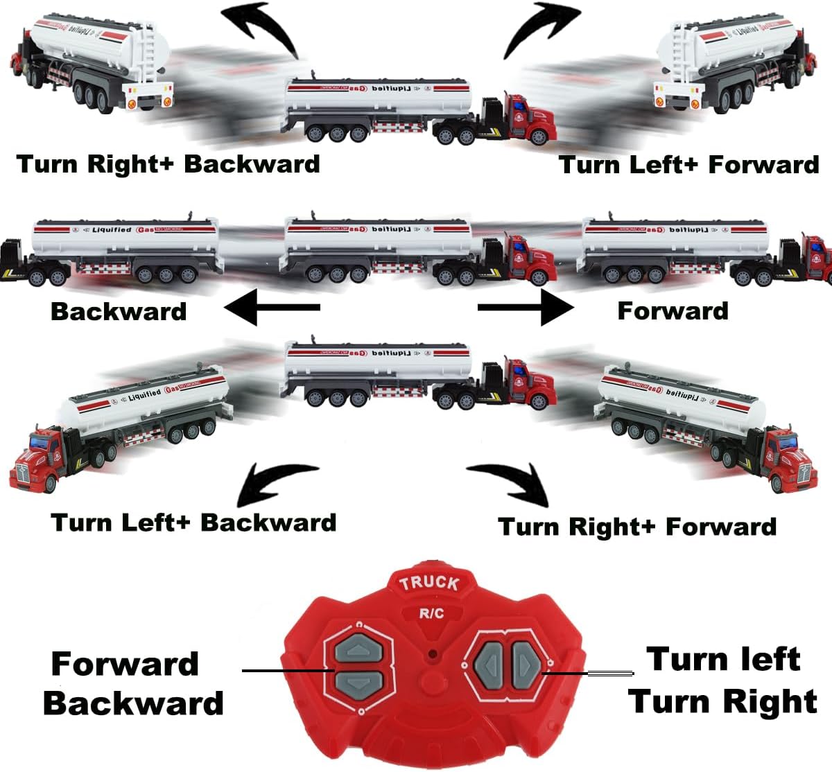 Package Includes: 1xRemote Semi Truck Fuel Trailer Truck,1xUSB Cable, 2×3.7v Battery and 1xBeautiful Packaging Box.
