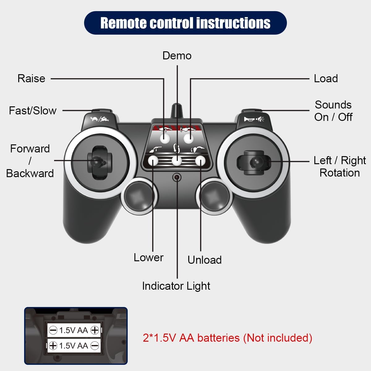 [Full Proportional Servo Control]: the speed of this toy depends on push switch the controller uses on the remote control, a push to the end of the loading truck start speed will be the maximum, slow push, start speed will slowly increase.
