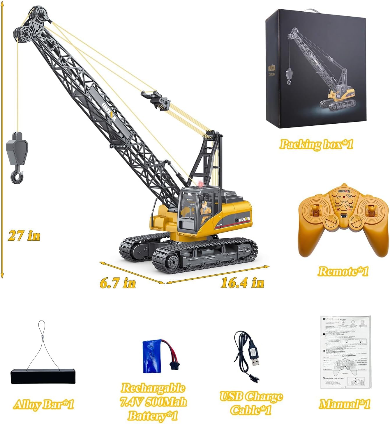 Special Simulation Design Crane: 1/14 scale tower crane is built at an impressive 1:14 scale and is Ready to Run(RTR). It can lift heavy loads of over 3.5lbs with aluminum hook, and transport other construction vehicles or props to another place on the site. Your kids can master how to build construction tools and how to counter balance loads in the way they construct models