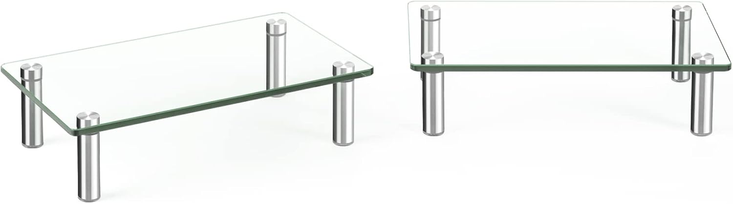 Rfiver Dual Glass Monitor Stand Riser, 2 Pack Computer Monitor Riser, Clear Monitor Stand for Desk, Create More Storage Space Under for Screens/Laptops/Printers