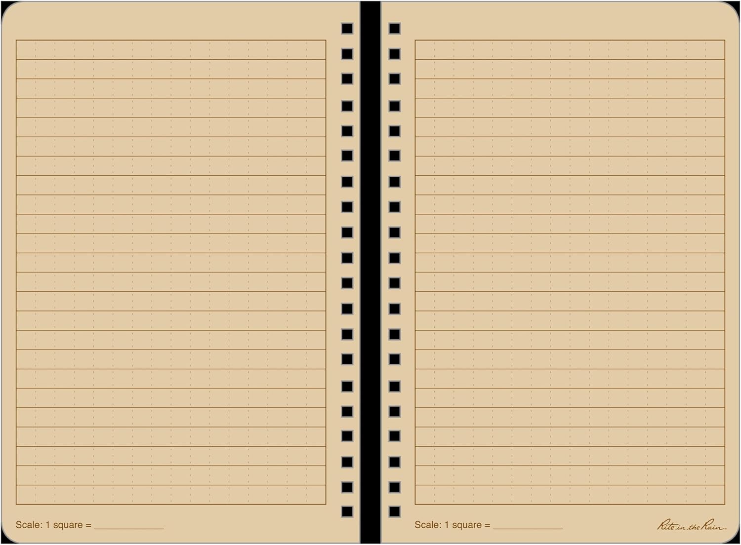 Rite in the Rain Weatherproof Side Spiral Notebook, 4.625″ x 7″, Tan Cover, Universal Pattern (No. 973T)