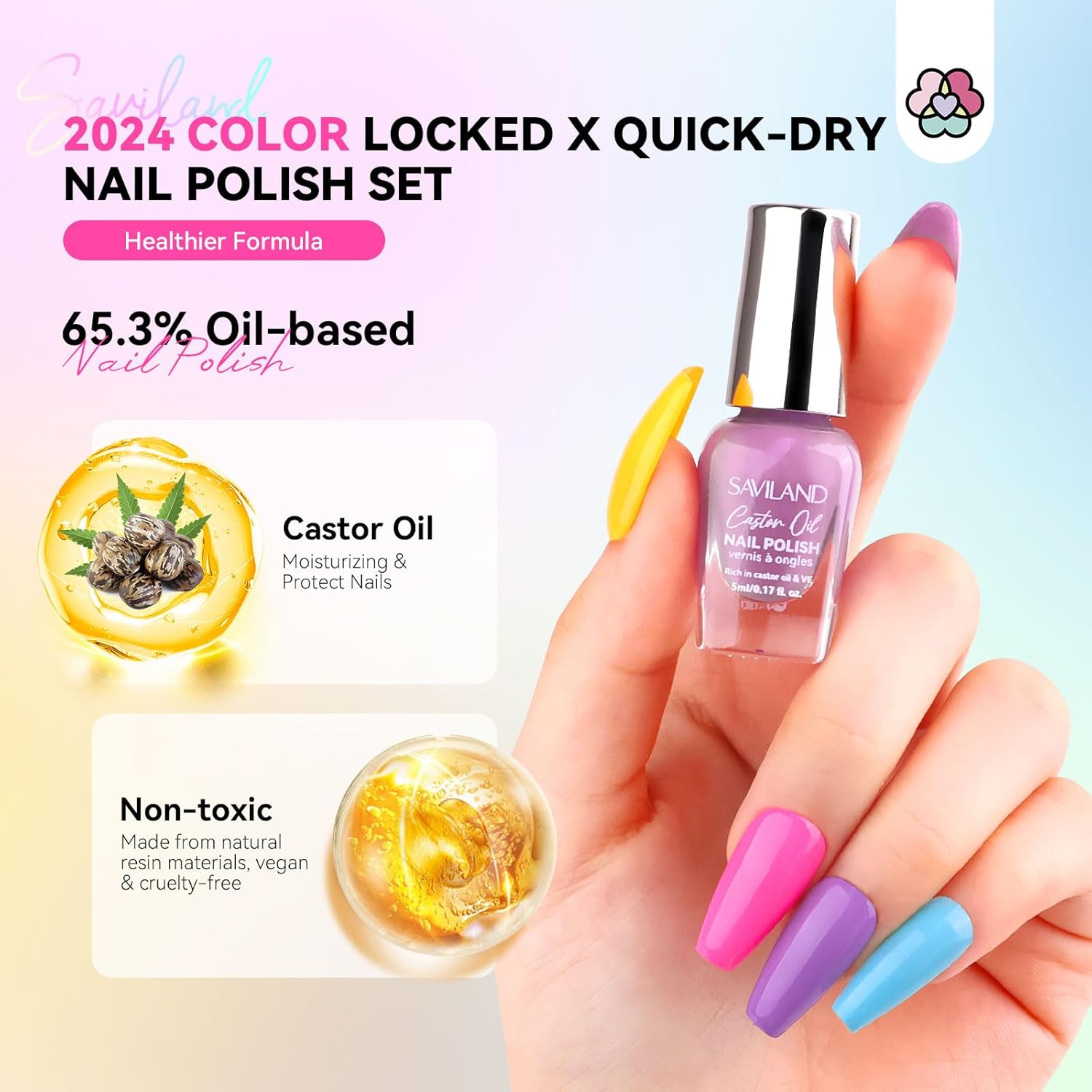 Upgrade Formula & Safer Nail Art: SAVILAND vivid color summer Fingernail Polish Set is specially formulated with healthy ingredients, like castor oil & Vitamin E, which help to strengthen nail and improve nail structure while charm nails, reduce nail fragility, increase nail hardness and durability, so you can say goodbye to brittle nails