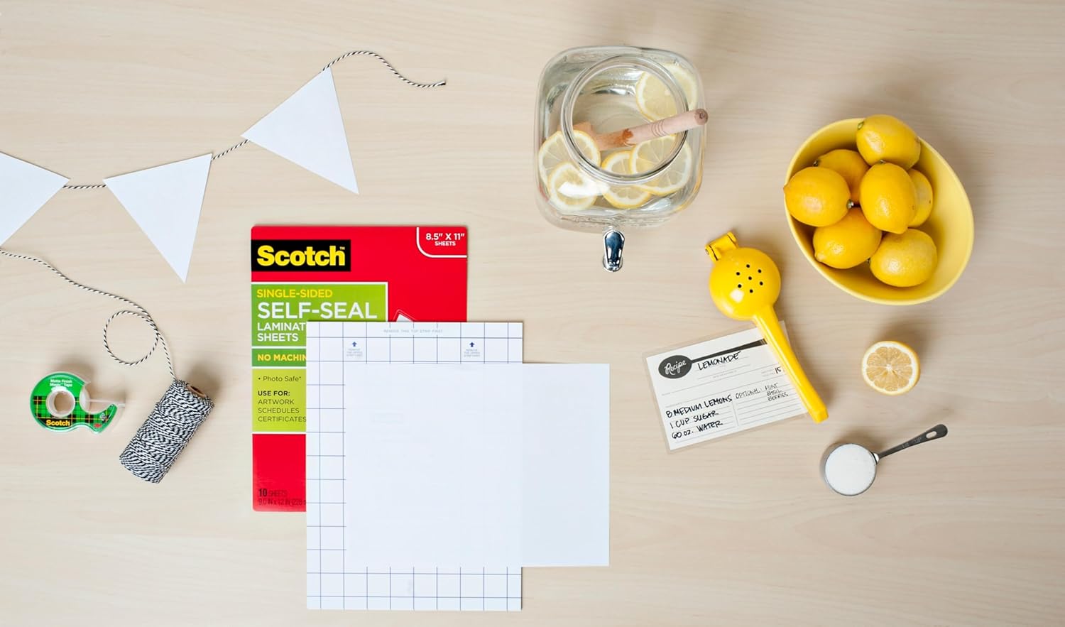 Scotch Self Sealing Laminating Sheets provide instant, permanent document laminating without heat or hassle. Protects and adds professionalism to business documents. Great for signs, flyers, schedules, certificates, to-do lists, and other frequently used documents. Easy to use…no special tools or equipment needed. Ultra clear to let important information show through. Ideal for marker-proof, tear-proof and spill-proof paper items that you want to last in the home, office or classroom. Letter Size, for items up to 8.5 in. x 11 in. 10 pack.