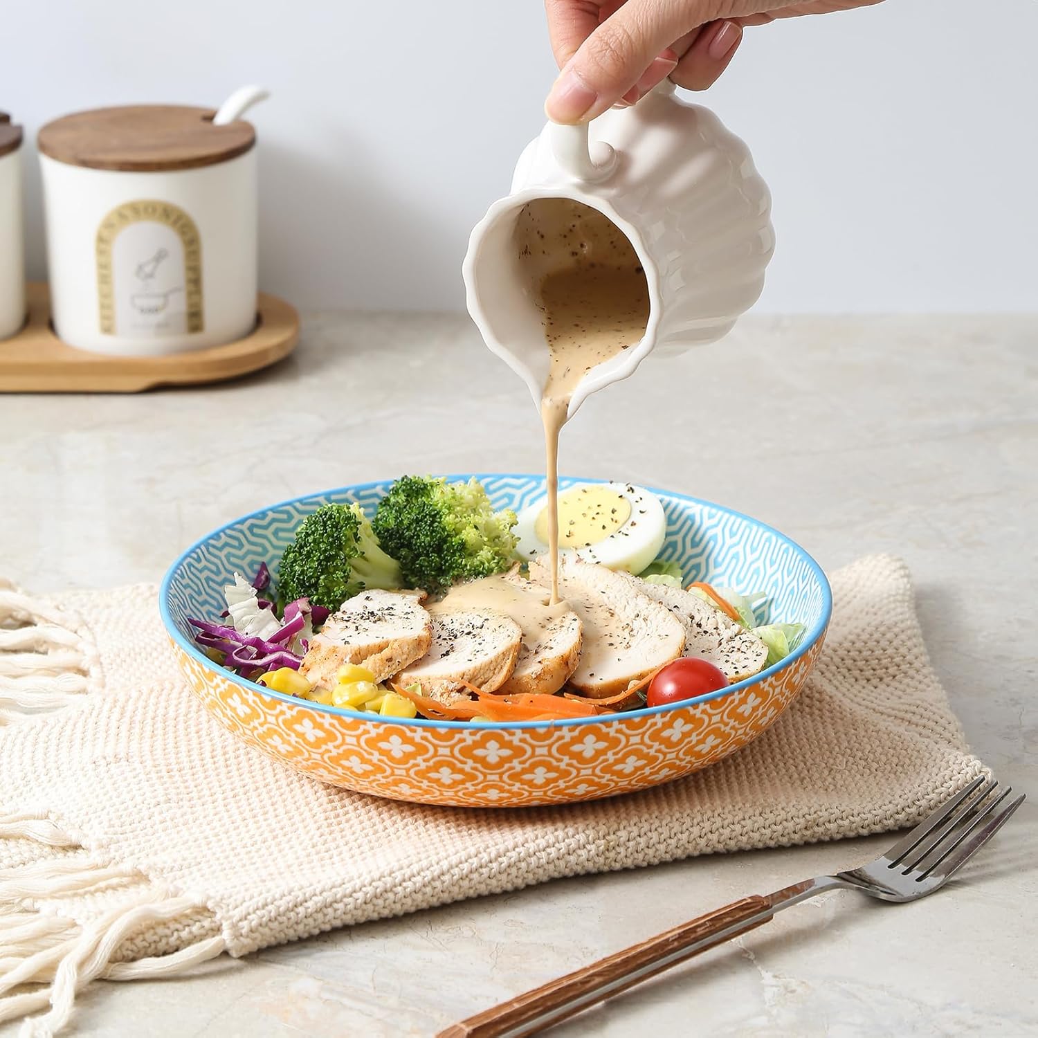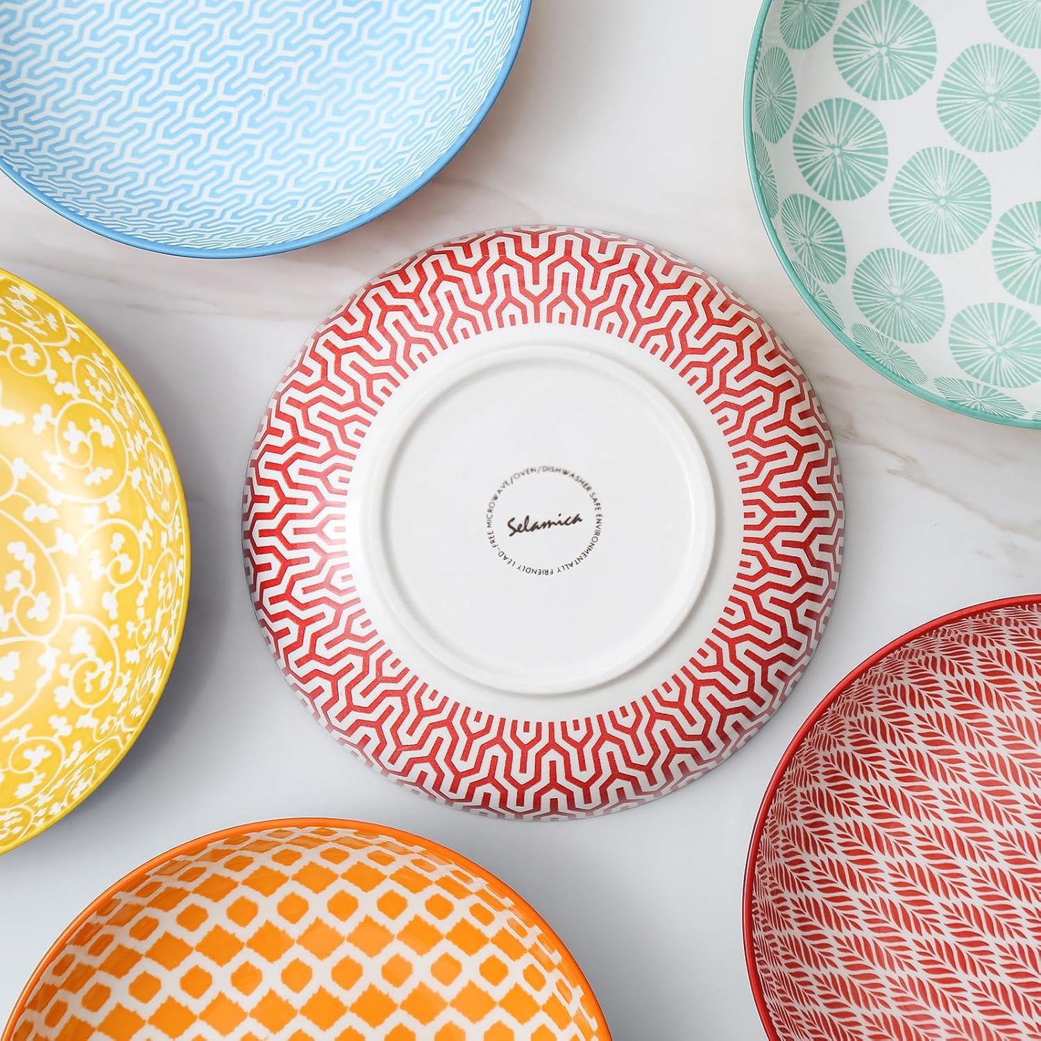 Selamica Ceramic Pasta Bowls Set, Large Salad & Dinner Bowls 8.6 Inch, Wide Shallow & Deep Plates for Pasta Soup, Microwave & Dishwasher Safe, Set of 6, Assorted Colors