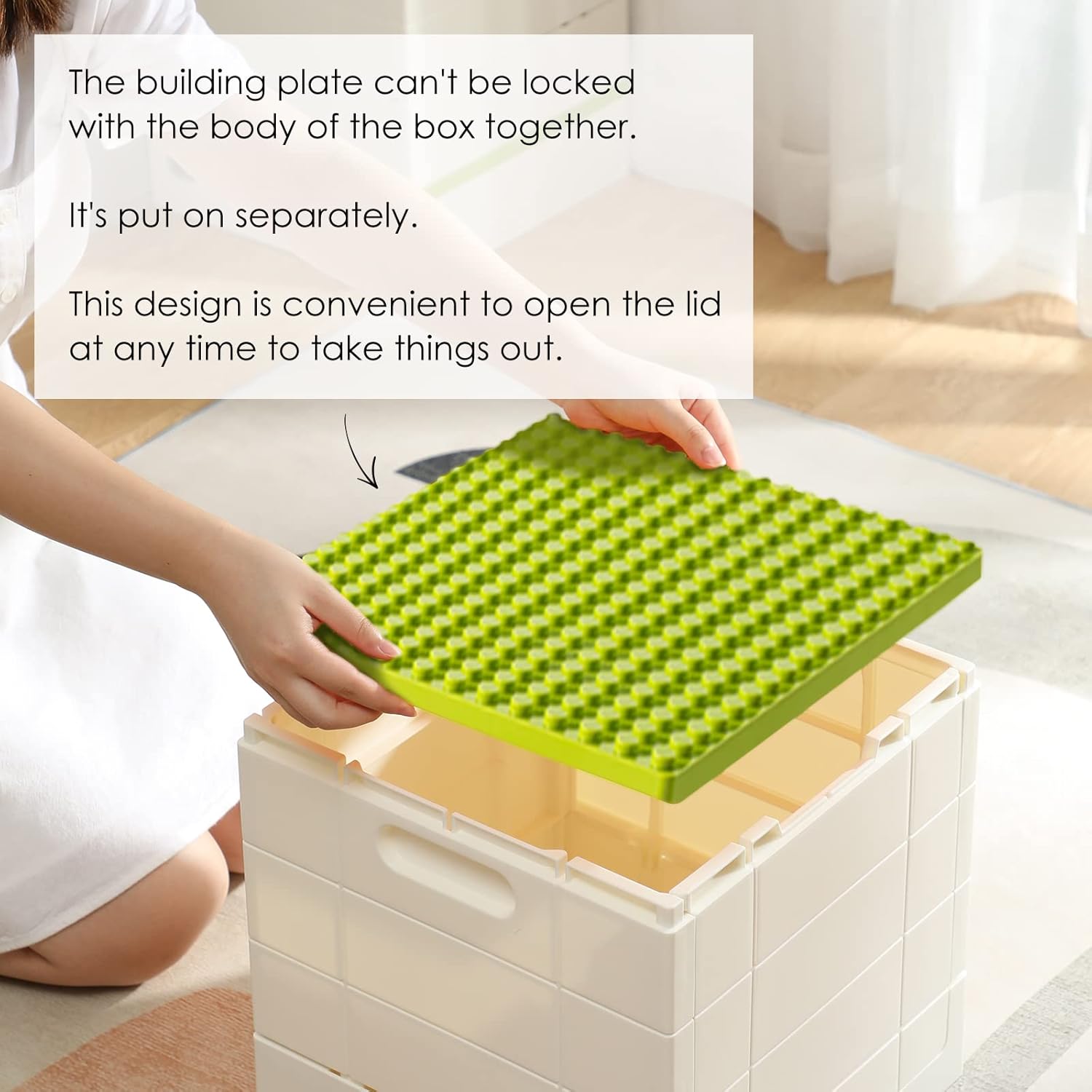 ✨ Foldable Storage Box: Perfect for storing Lego blocks. The lid of the box is perfect to combine with Duplo Blocks and Intermediate size MEGA BLOKS. The separate baseplate is perfect for building Regular size Lego Bricks.