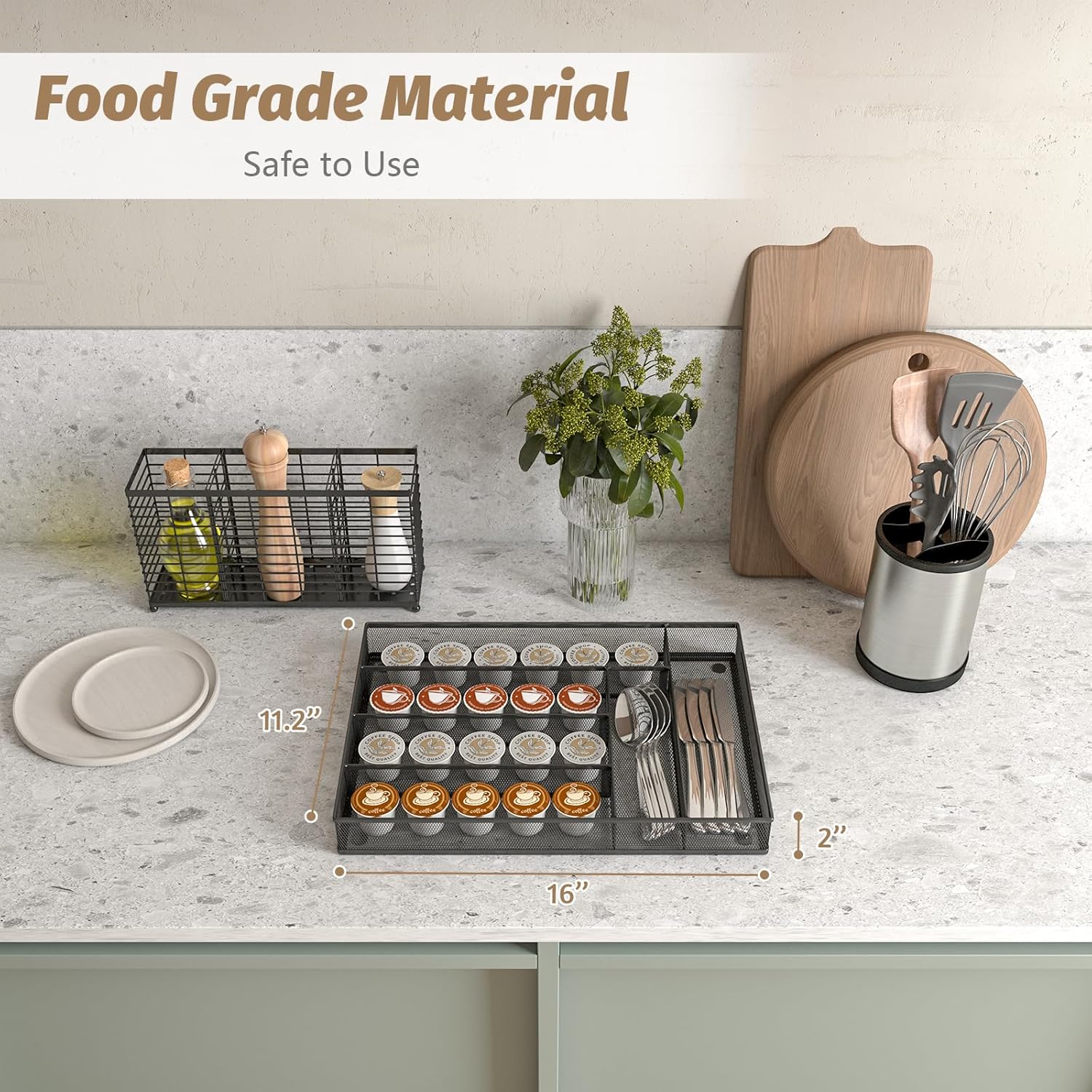 Premium-Grade Material: This Silverware Organizers Made of Premium Steel, The Durable Metal Mesh Design Ensures Longevity, While Also Being Portable and Easy to Clean with Mild Soap and Water.