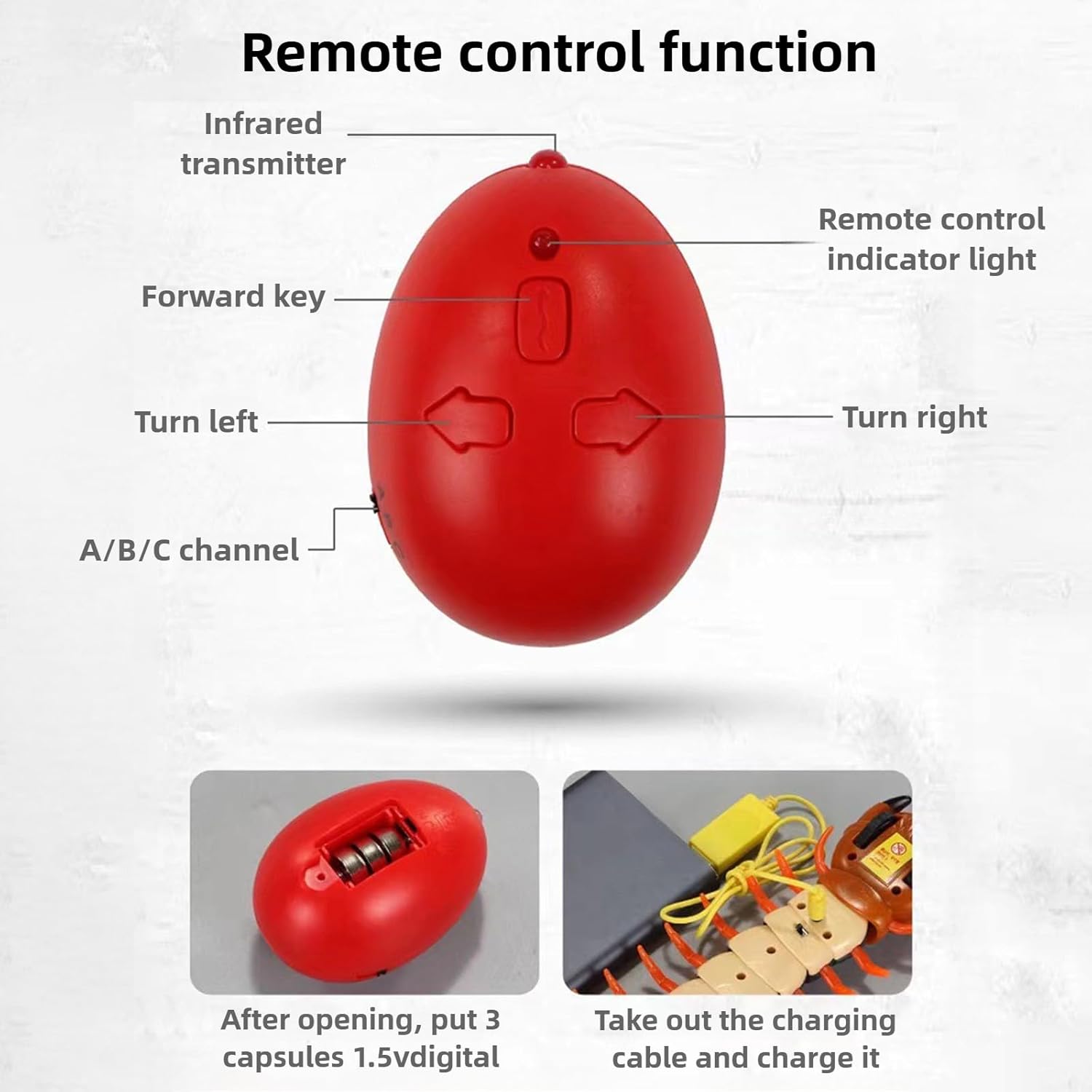Remote Control Function: This centipede can move forward, turn left and right, with glowing eyes on its head, and its body and tail can swing flexibly. The infrared remote control adopts egg-shaped design and is easy to operate.