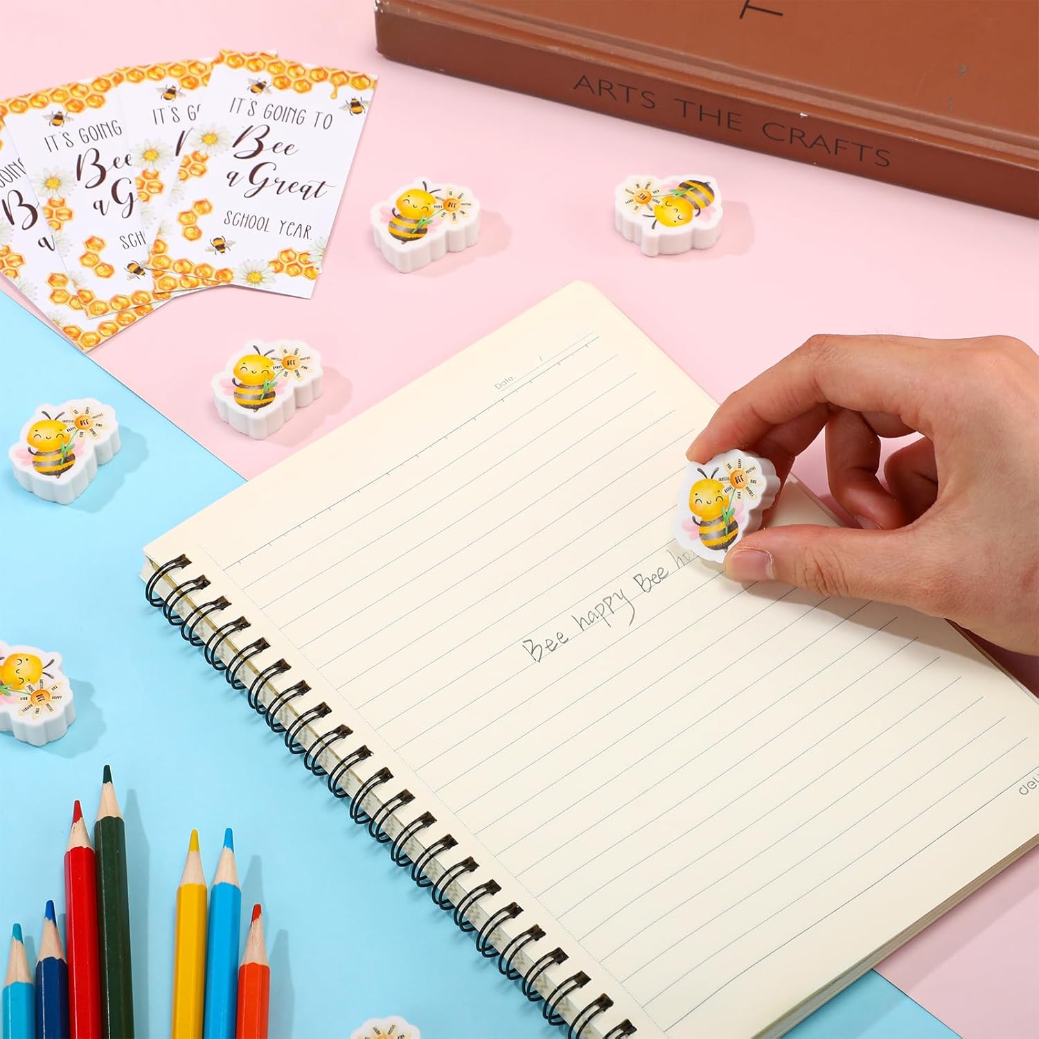 Perfect Size: our bee erasers bulk is approx 1.18 inch long, 0.39 inch thick, with a card size of 3.35 x 1.85 inches; This set provides ample space for personalized messages; Packaged in convenient opp bags, these bee erasers bulk sets make charming gifts that inspire creativity and organization in anyone who receives them