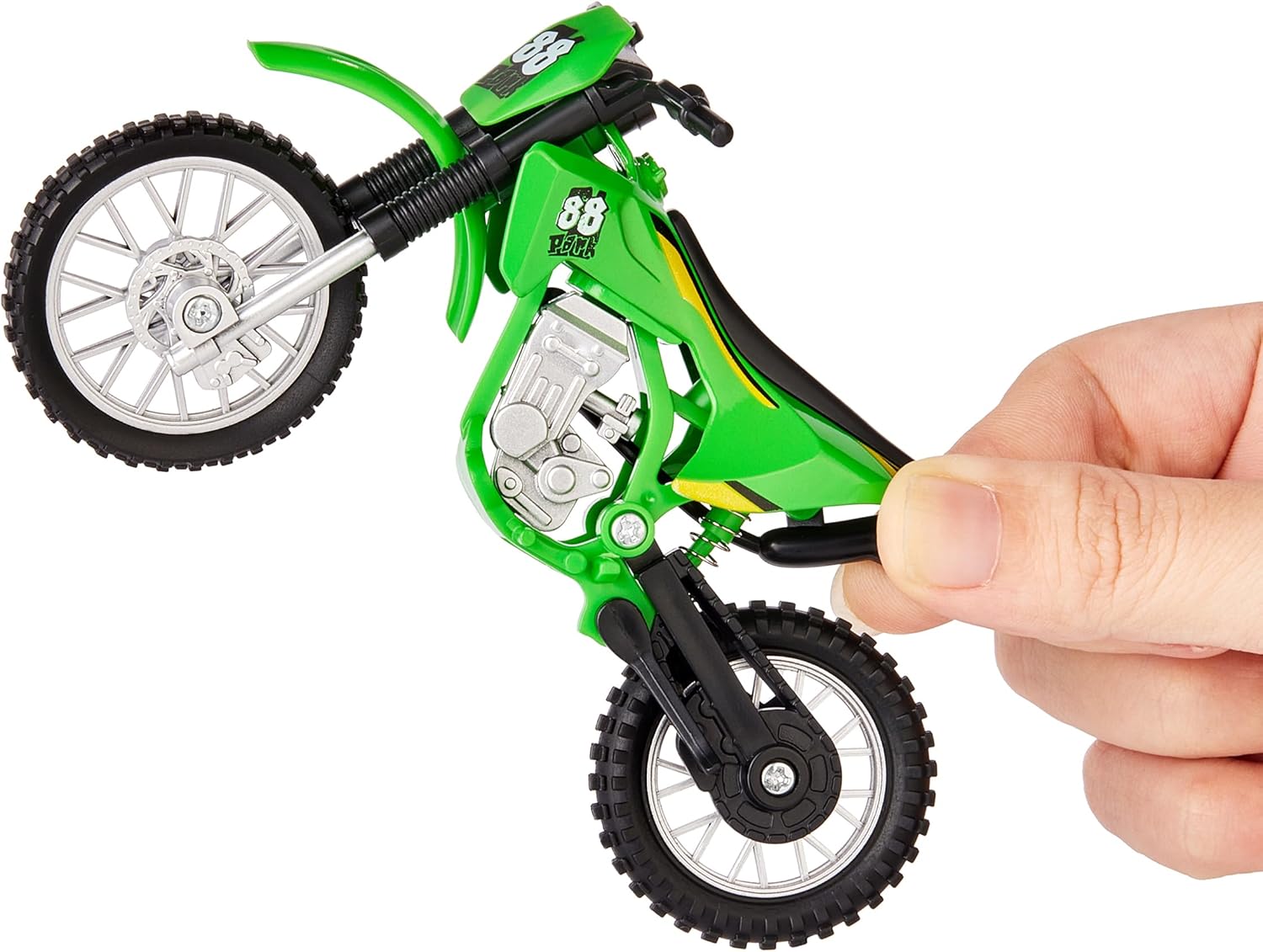 [Easy and Stable] Our mini die-cast dirt bike is made of high quality plastic, the green appearance brings kids the speed and passion of recreate the scene