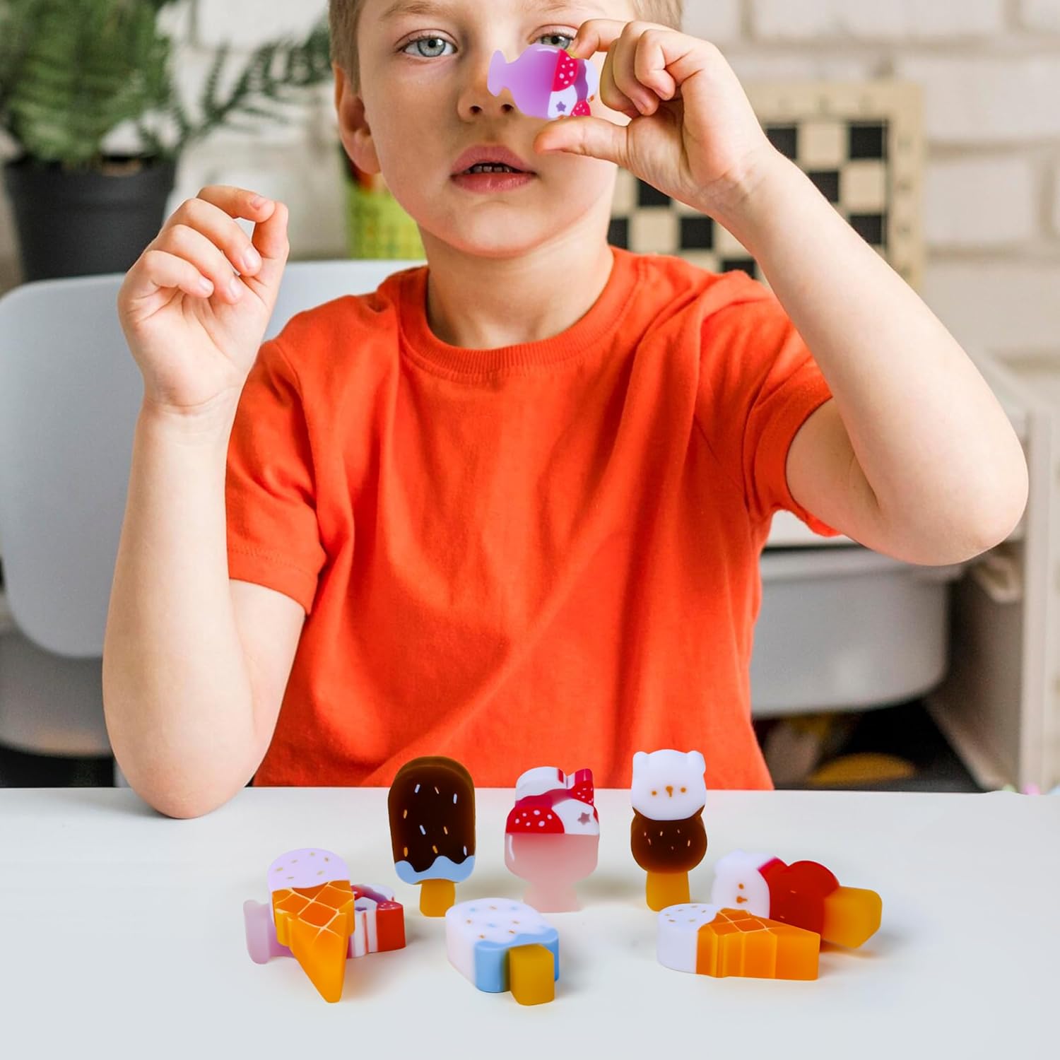 【Adorable and Lifelike Ice Cream Designs】:Features a variety of classic ice cream shapes with vibrant colors and realistic details. These incredibly cute erasers instantly capture children’s attention, turning routine study time into a more engaging and fun experience.