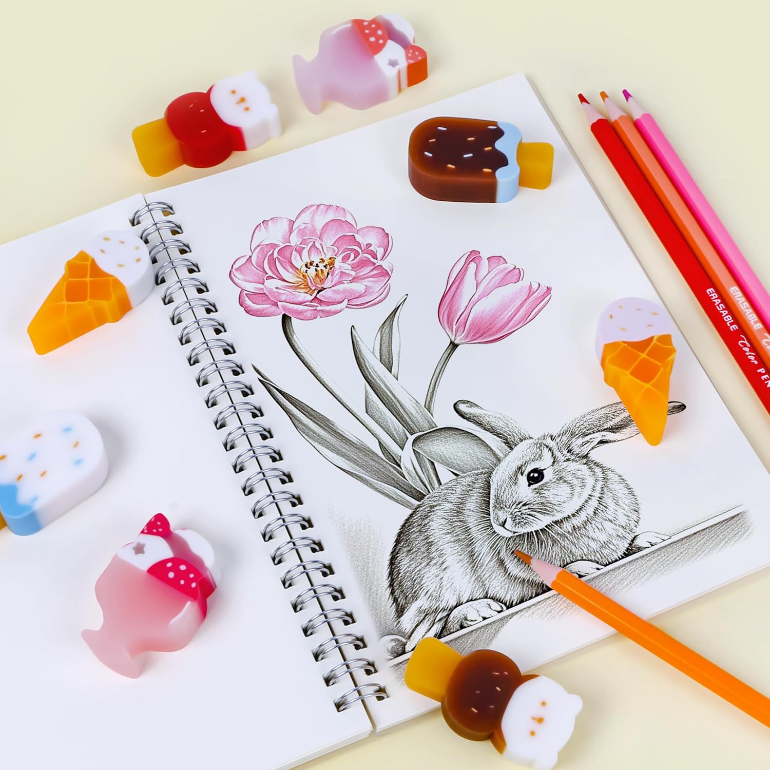 【Unique Ice Cream Fragrance】:Each kawaii eraser carries a sweet and delightful strawberry, taro, or chocolate ice cream scent. The pleasant aroma released during erasing transforms mundane study sessions into an enjoyable sensory experience, helping children stay focused and refreshed while engaging in learning tasks.