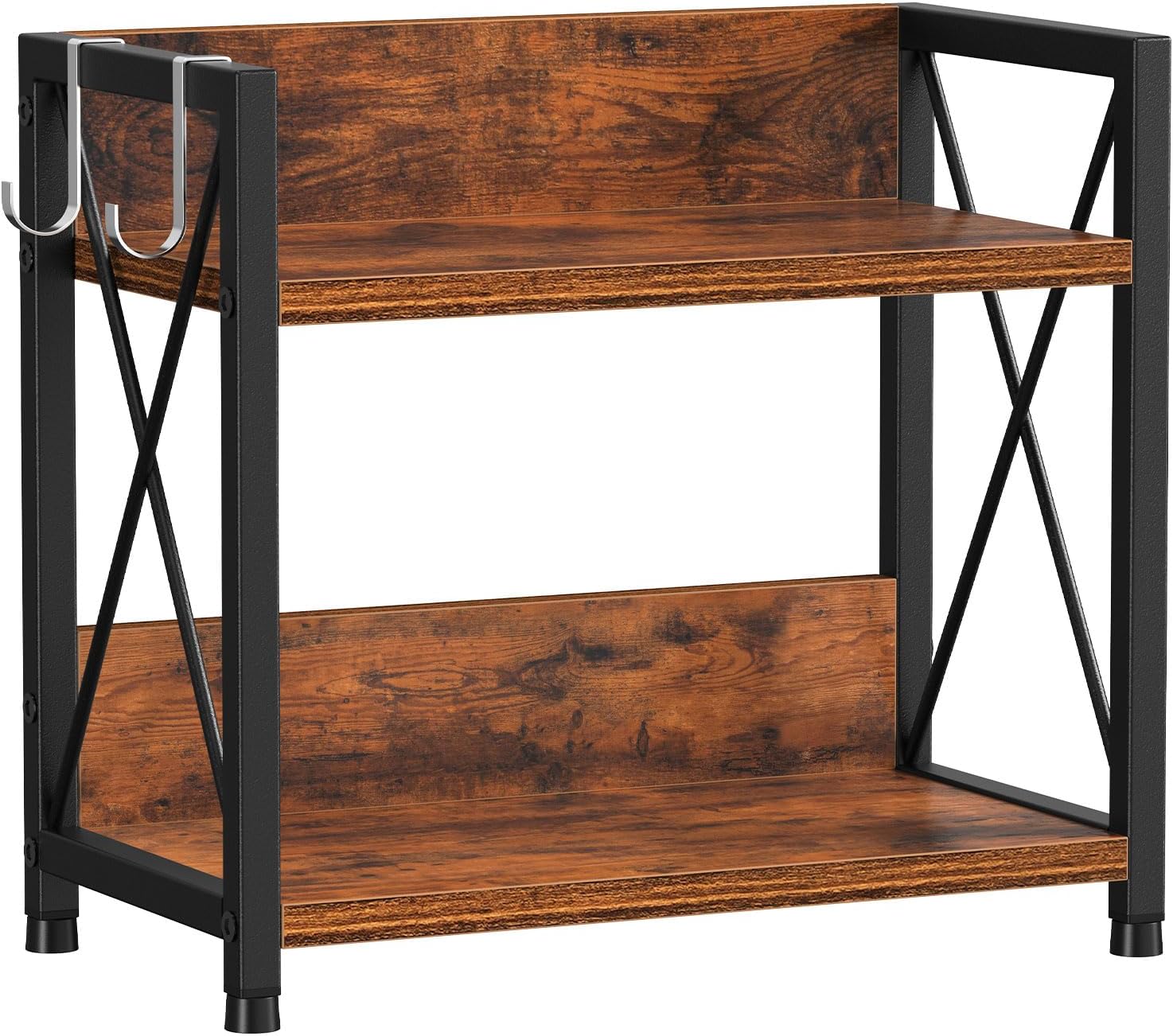 Snughome Kitchen Countertop Organizer,2 Tier Spice Rack Organizer for Countertop,Wood Kitchen Counter Shelf Organizer with Hooks (Rustic Brown,Small)