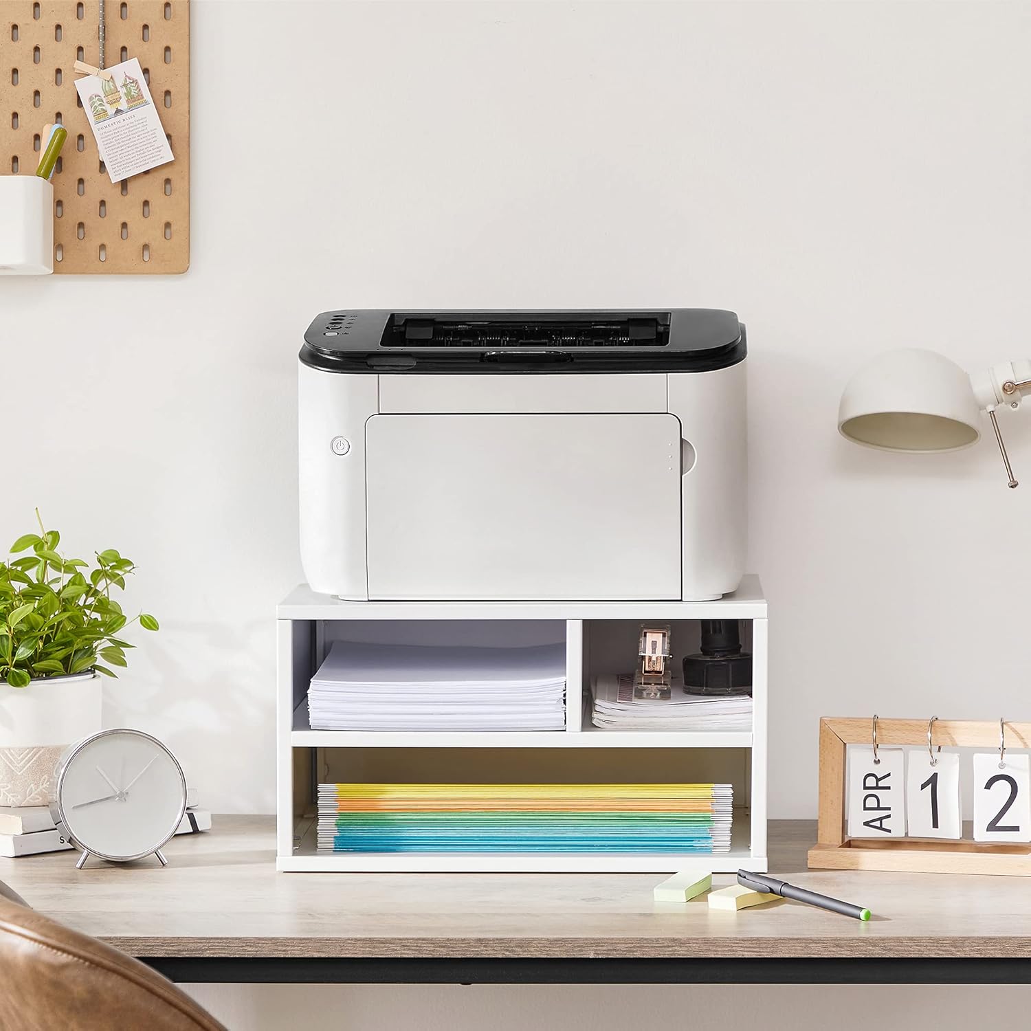 SONGMICS Printer Stand for Desk, Home Desktop Printer Stand with Storage Shelves for Office, Steel Frame, Multi-Purpose Rack, 15.9 x 11.8 x 8.7 Inches, White UOMC101W01