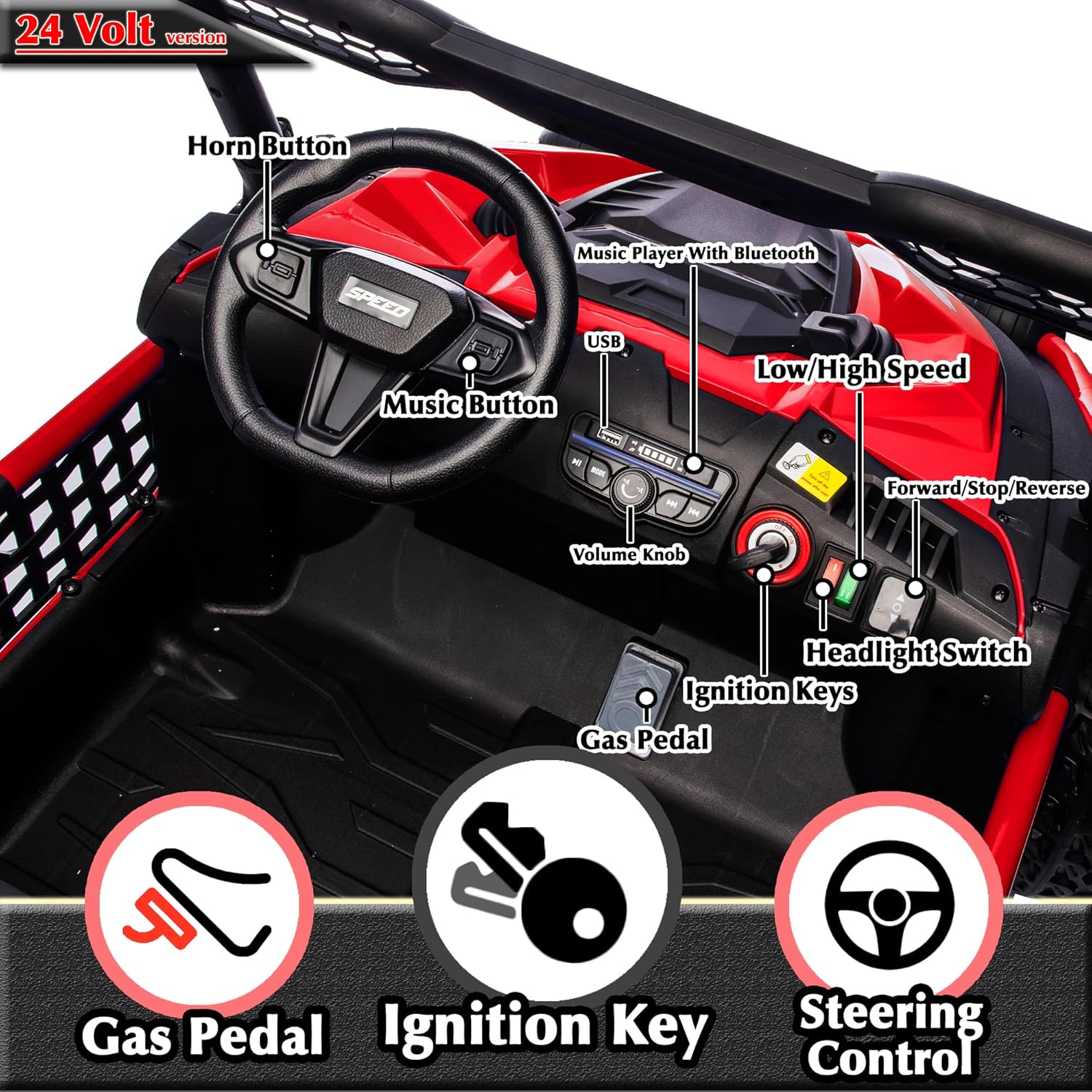sopbost 24V 2 Seater XXL Kids UTV Ride On Car with Remote Control 4WD Off Road Electric Vehicle Ride On Toy Car with EVA Tires Wheels, Metal Frame, Bluetooth (Red)